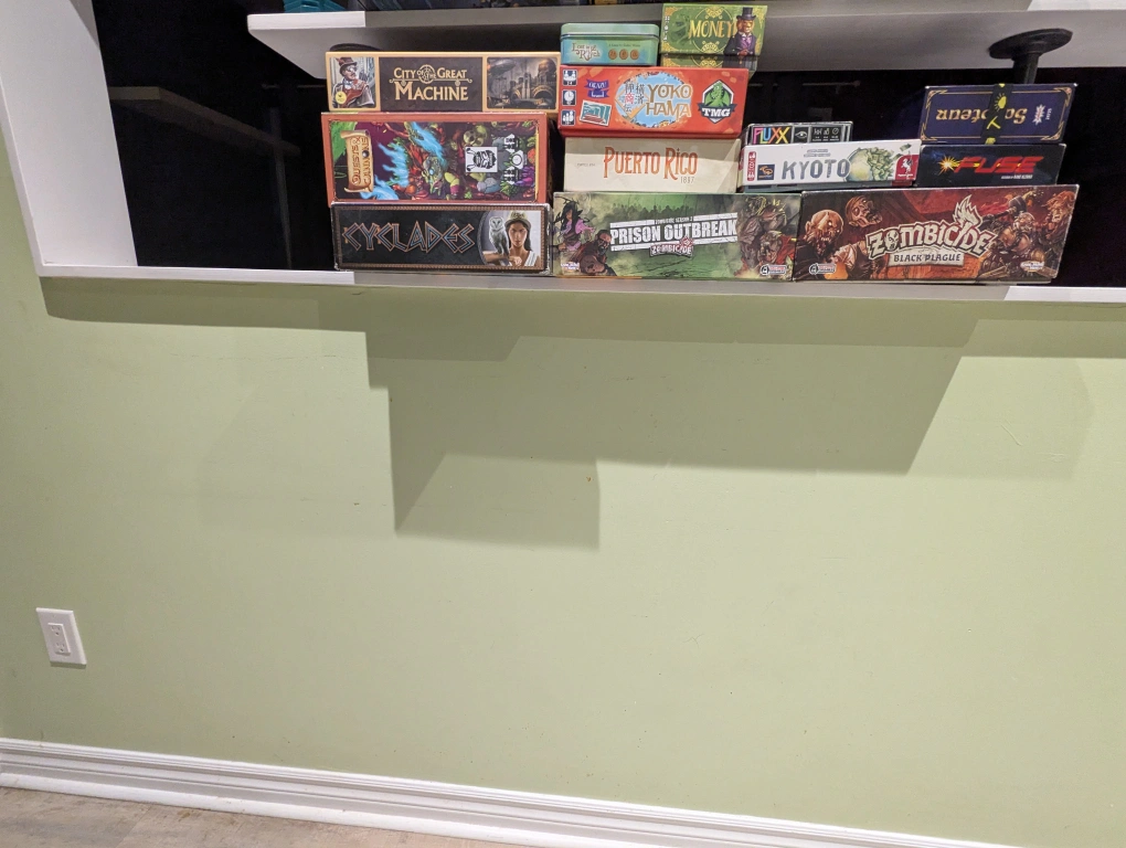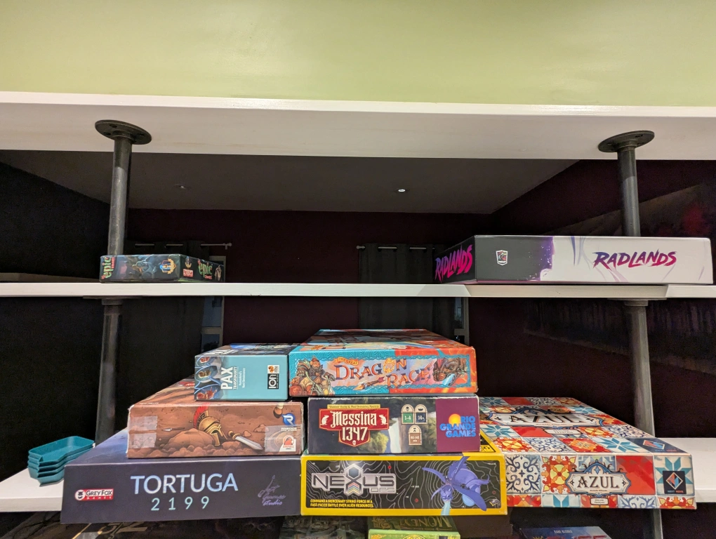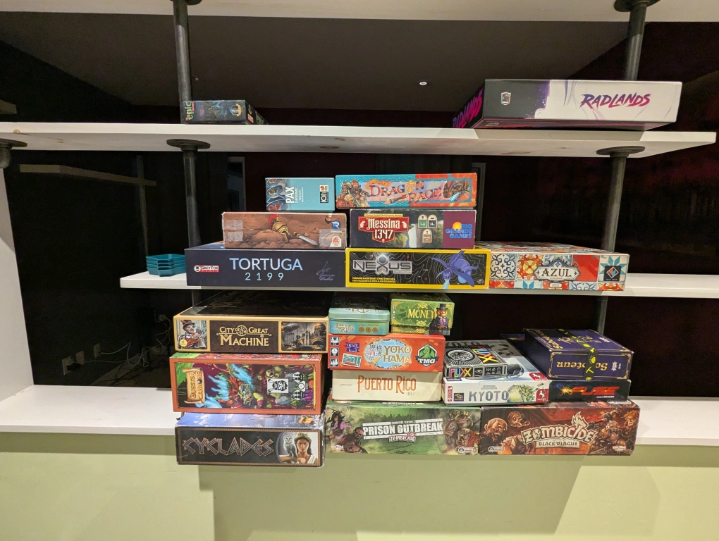 Make me a trade for any game Check out my want list, and I am open to games that aren't on my list. Top shelf: Tiny Epic Zombies (brand new condition) Radlands superdeluxe version (great condition) Middle shelf: Pax Transhumanity (brand new) Raiders of Scythia (good condition inside but some wear and tear on the box) Tortuga 2199 (a bit of box damage but unplayed) Messina 1347 (a bit of damage to the box on top) The Great Dragon Race (brand new) Nexus Ops (good condition) Azul (good condition) Bottom shelf: City of the Great Machine (played once, brand new) Quests and Cannon (great condition) Cyclades (good condition inside, some wear and tear on the box) Lost in R'lyeh (good condition) Money! (Great condition) Yokohama (great condition) Puerto Rico 1897 (great condition) Zombicide Season 2: Prison Break Fluxx (fair condition) Kyoto (great condition) Zombicide: The Black Plague (good condition) Saboteur anniversary edition (good condition) Fuse (good condition) Want list Brass: lancashire Blood on the clocktower Endeavor: Age of sail Endeavor: Deep Sea Nemesis Kyoto No Neko Shikoku legendary Inventors Civilization A New Dawn 6 Siege Heat: Pedal to the metal Blood rage