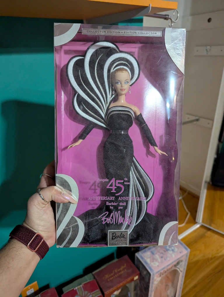 Collector edition Barbie doll. 45th anniversary. Designed by Bob Mackie. Black and white gown. In original box. Never opened cross posted