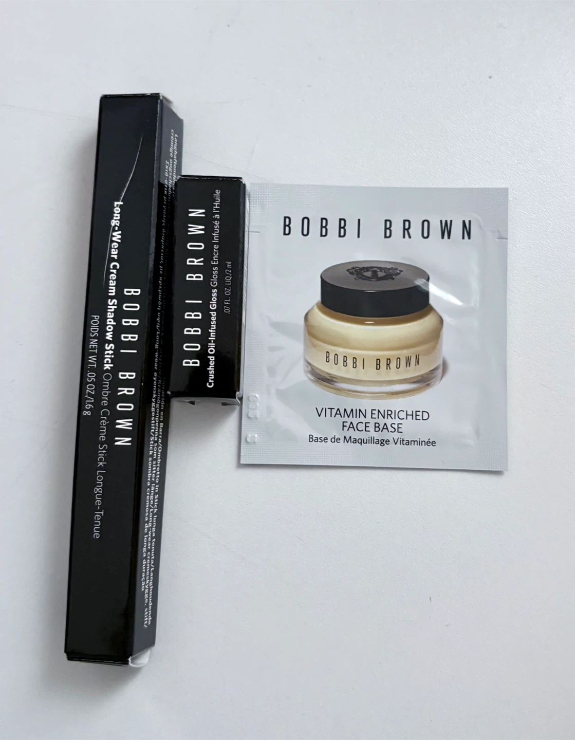 1000+Selling a Bobbi Brown set including Long-Wear Cream Shadow Stick full size ( shade - sun pearl )never used but has a slight mark on the side from the lid while I was trying to close the stick Crushed Oil-Infused Gloss (slow jam travel size ) and a Vitamin Enriched Face Base sample! Perfect for trying out some new Bobbi Brown products All are new and in original box Price is firm Note - ‼️Only selling as a bundle ‼️ Plz don’t waste my time for individual prices Pick up only Cash only