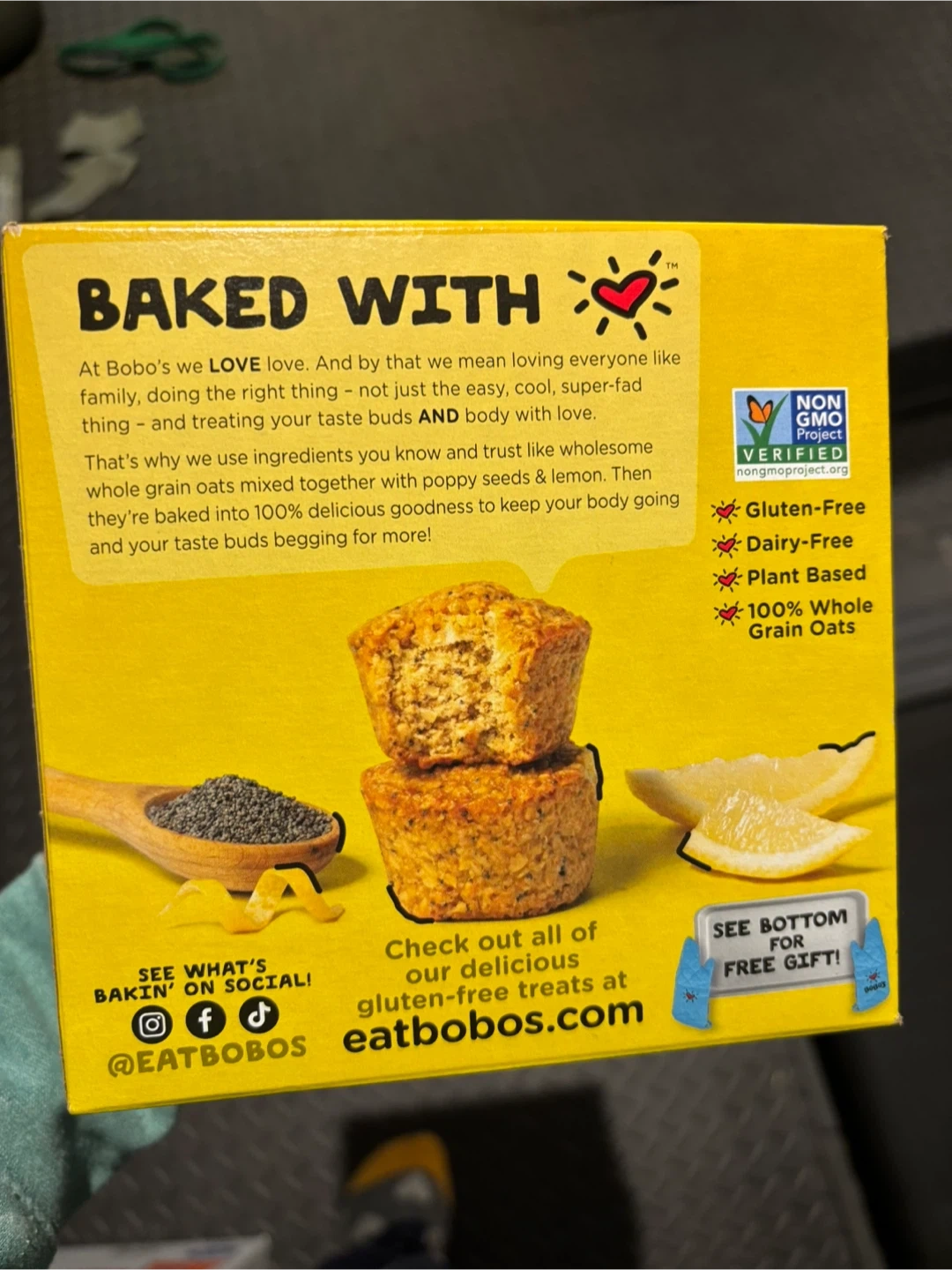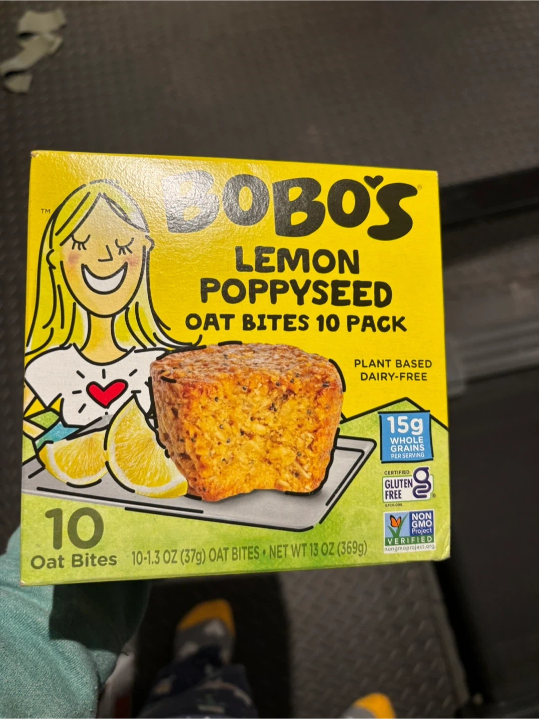 1000+Selling a box of Bobo's Lemon Poppyseed Oat Bites! Each box contains 10 individual oat bites. They're gluten-free, dairy-free, and plant-based, made with 100% whole grain oats. Expiry Date is 2025 December 15