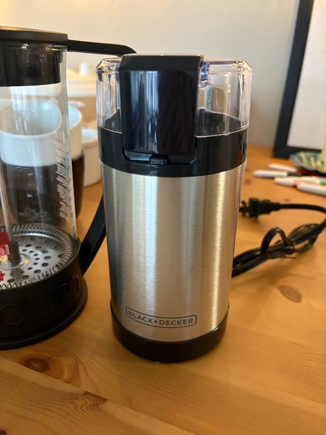 115Used the French Press a handful of times, have a Nespresso now so don’t really need. Grinder has never been used. Can sell separately or together ($15 each).