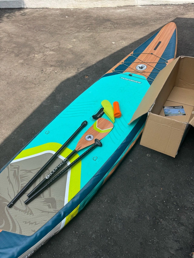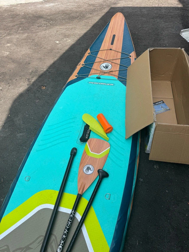 Good condition. No leaks, no issues. Working great. Includes paddle, fin and repair kit. No pump. Thanks.
