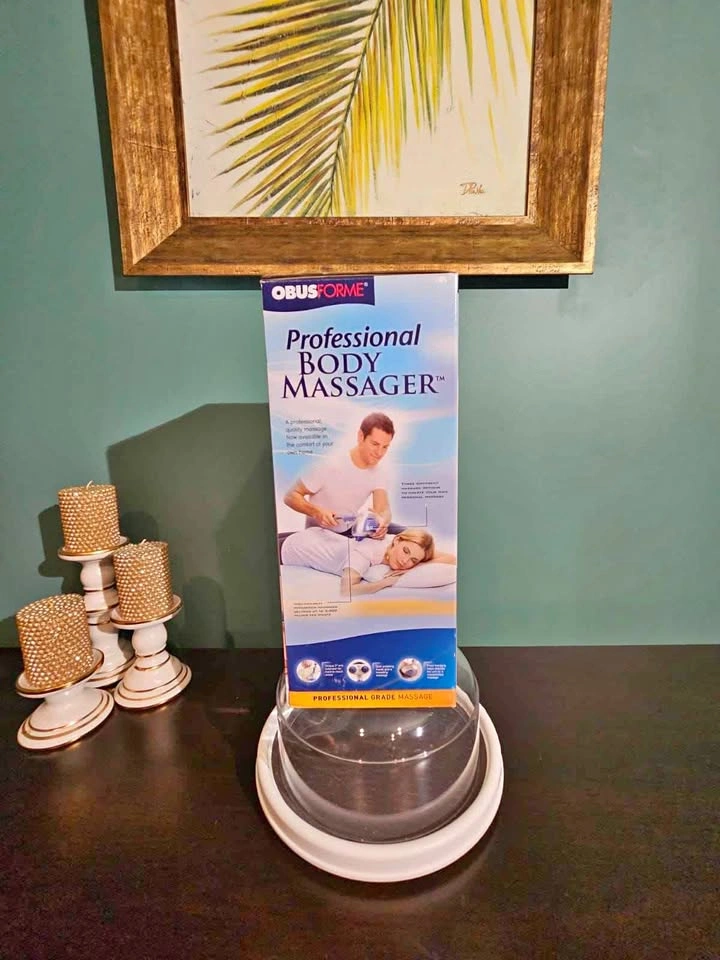 ObusForme Professional Body Massager is new-in-box! * Front handle to help emphasize the unit for a potent and direct massage. * Variable speed control providing gentle surface massaging through deep muscle relief. * Dual kneading massage heads give a simulating massage. * 35" long extension cord. * Four active massage heads. Bring the spa home to you! If the ad is up, it's available!