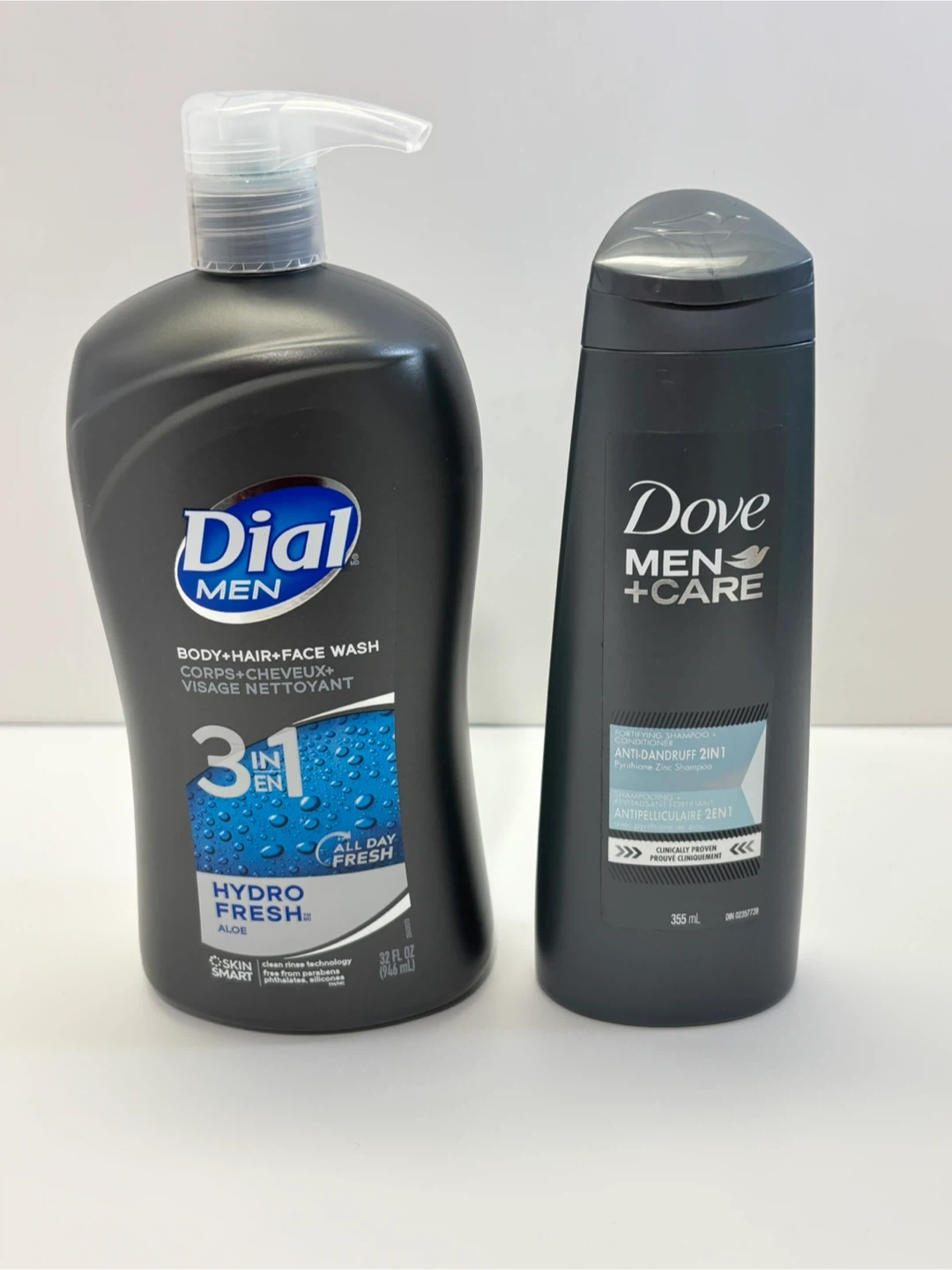 108Price takes both Selling a New set of Dial Men 3-in-1 Body+Hair+Face Wash (32 fl oz) and Dove Men+Care Anti-Dandruff 2in1 Shampoo (355 ml) - Dial Men: Hydro Fresh Aloe - Dove Men+Care: Fortifying Shampoo + Conditioner
