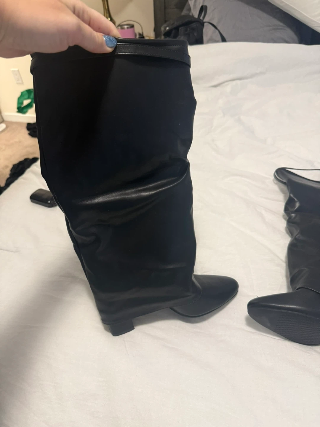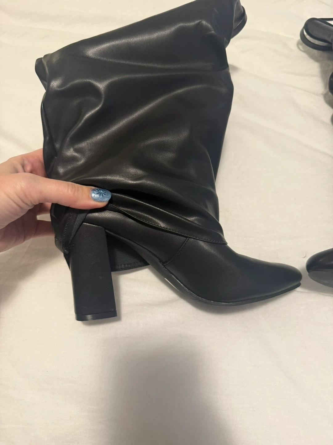 These are a pair of black knee-high boots. Like new condition and would be a stylish addition to any wardrobe! They are a classic design and a versatile colour. Worn only to try on. Size 8. They were bought to be part of a “Tate McRae “ concert outfit and never worn.