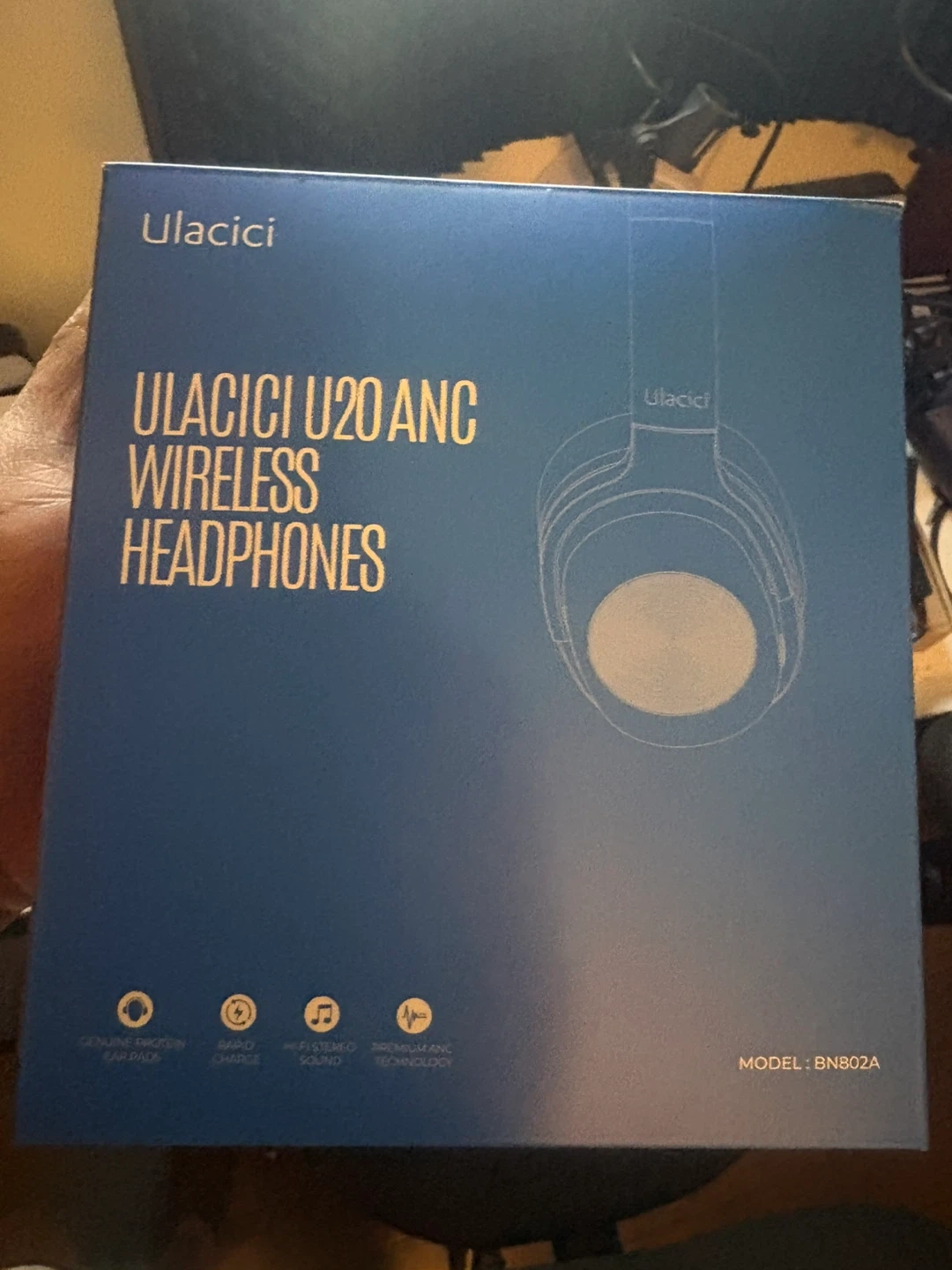 Selling a pair of Ulacici U20 ANC wireless headphones in black! These headphones feature noise cancelling structure and bass up technology for more bass and less noise. They also have a powerful battery life, offering 45 hours of play time with ANC on and 60 hours with ANC off. Comes with the original box