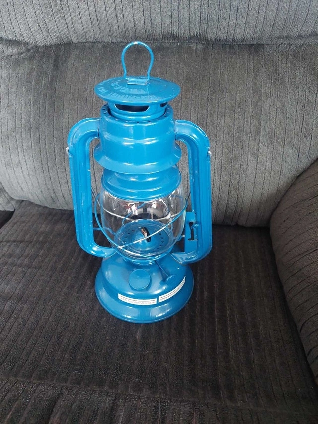 Kerosene lamps with a vintage style. These have a metal body with a glass globe chimney. They provide light and heat, making them great for emergency use. I used one for atmosphere at a wedding. I have 8 available, and they are like new. They offer a cozy cabin feel and add charm to any space, suitable for indoor or outdoor use. They're also great for an ice fishing aesthetic. Perfect for events like weddings, wakes, celebrations of life, or power outages. Can be used on a tabletop, carried, or hung. They were about $30 each new. Offered at: 1 for $15 / 4 for $50 / 8 for $80. Pick up near Birds Hill Park, Selkirk, or Lockport.
