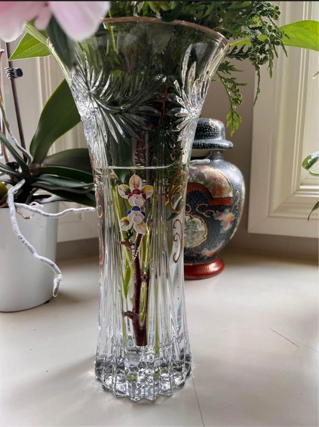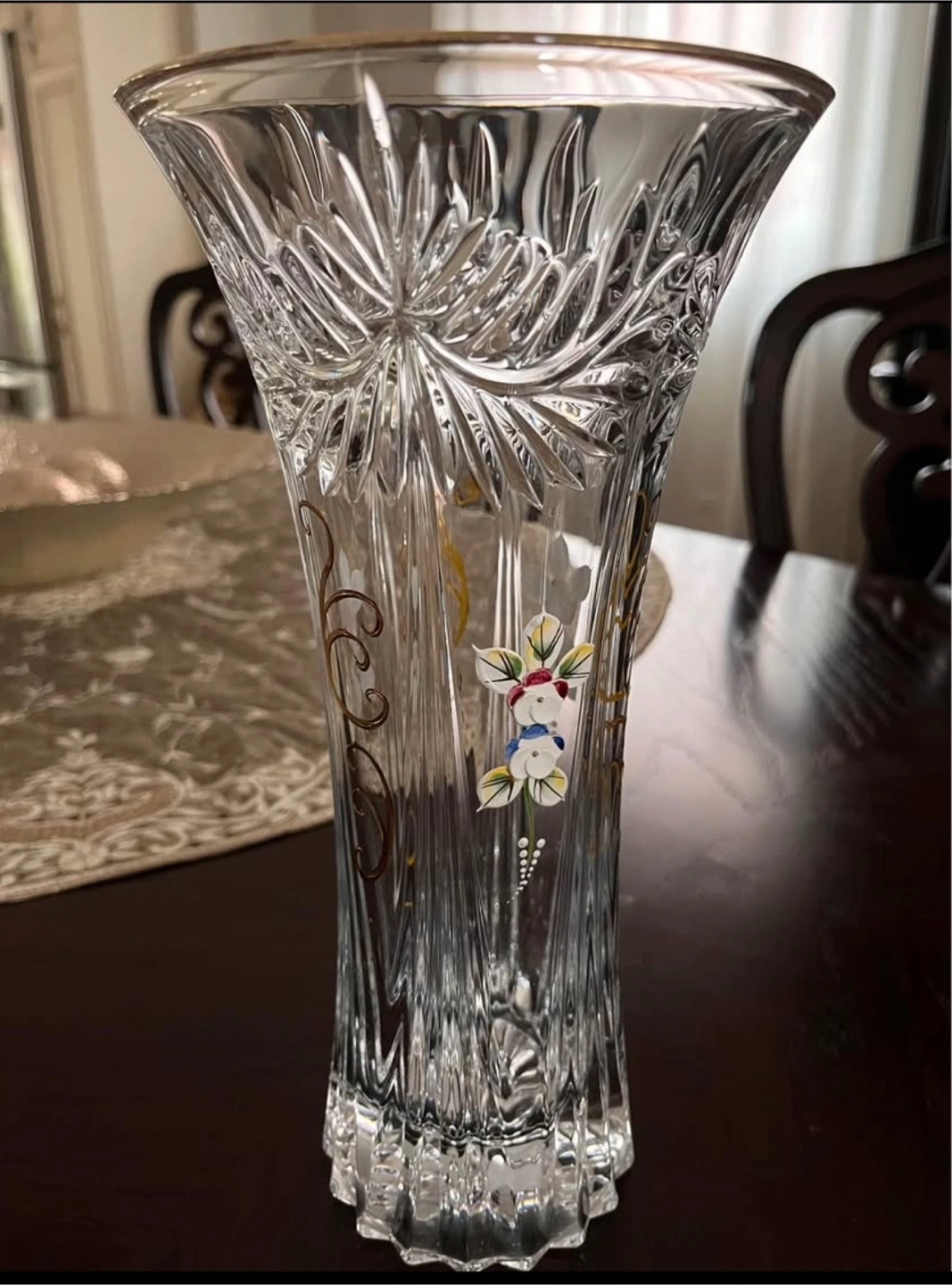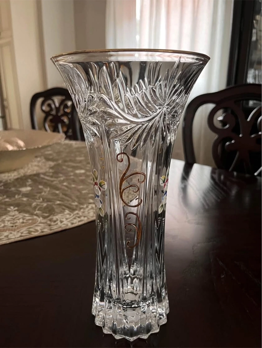 68Bohemian Crystal Flower Vase. Home Decor, Centerpiece Vase, Czech Bohemia Crystal Glass, very nice gift for your loved one. Made in Czech Republic. Height 30cm and vase opening 15cm width.