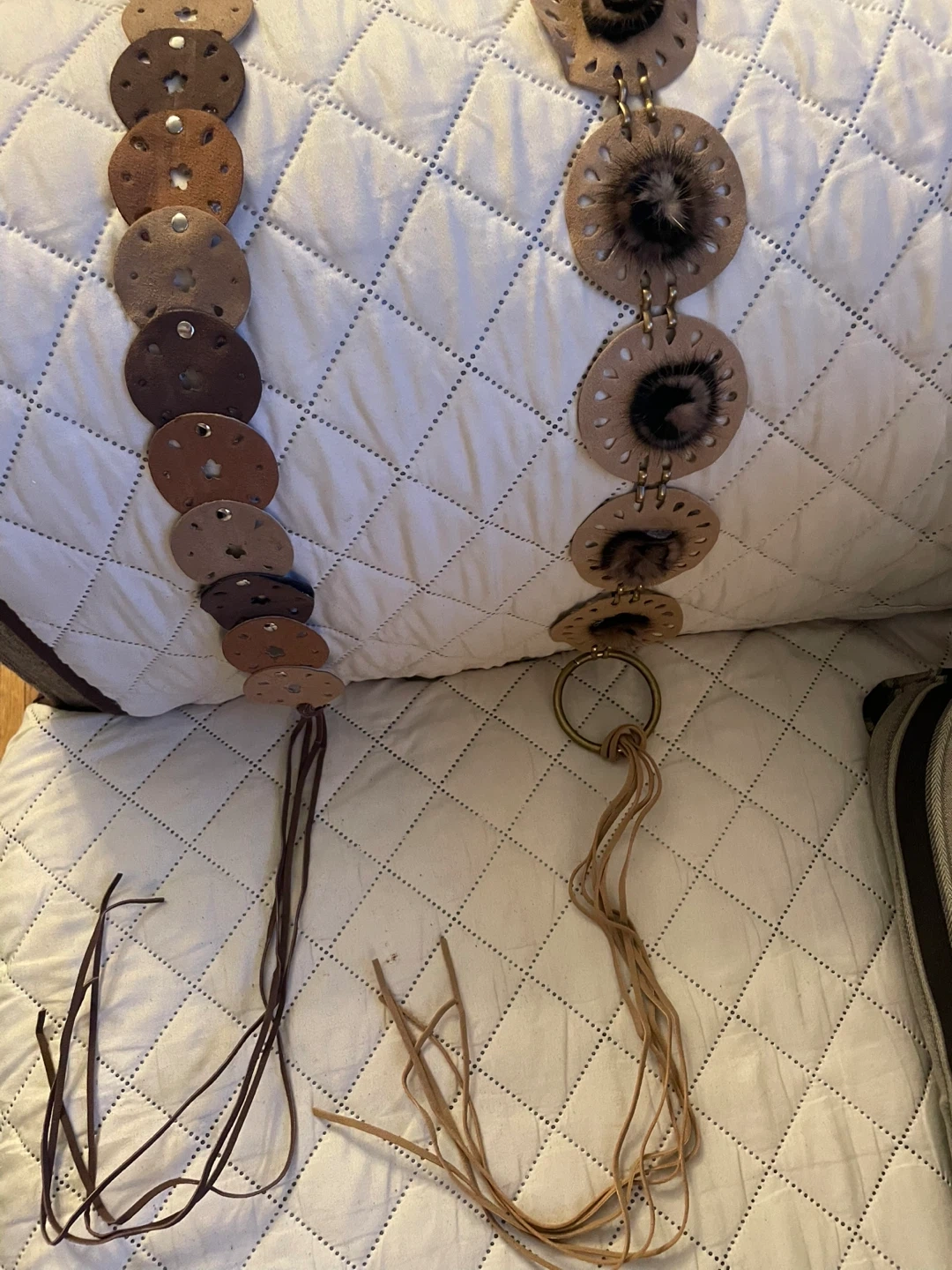92Unique boho-style leather belt featuring circular accents in varying shades of brown. Adds a touch of whimsy to any outfit! 2 for $10