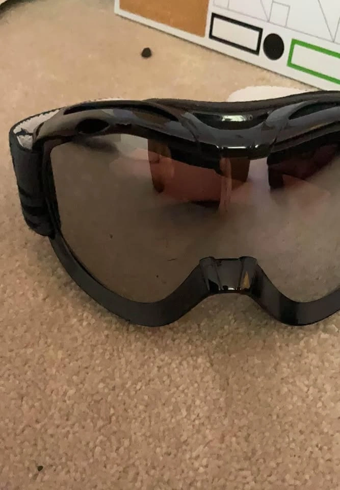 10Black with Vermillon Lens. Only has one little scratch one the lens from a wipeout as you can see in the last picture. Comes with protective bag.