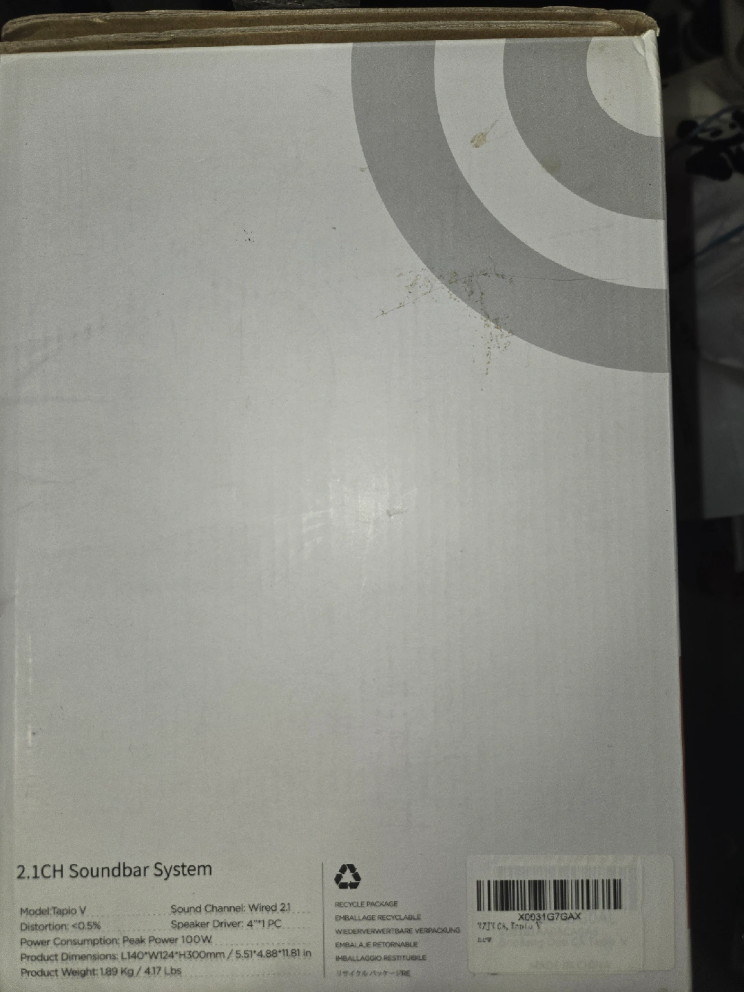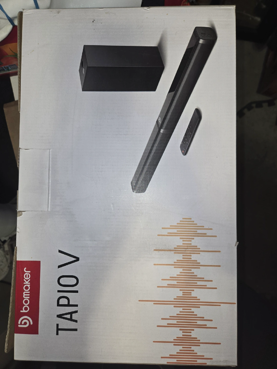 10Selling a Bomaker Tapio V 2.1CH soundbar system! It's in great condition and ready to boost your audio experience. Key features: - 2.1CH Soundbar System - Wired 2.1 Sound Channel - Speaker Driver: 4"*1 PC - Power Consumption: Peak Power 100W - Dimensions: 1.140*W124*H300mm / 5.51*4.88*11.81 in - Product Weight: 1.89 kg / 4.17 LBS