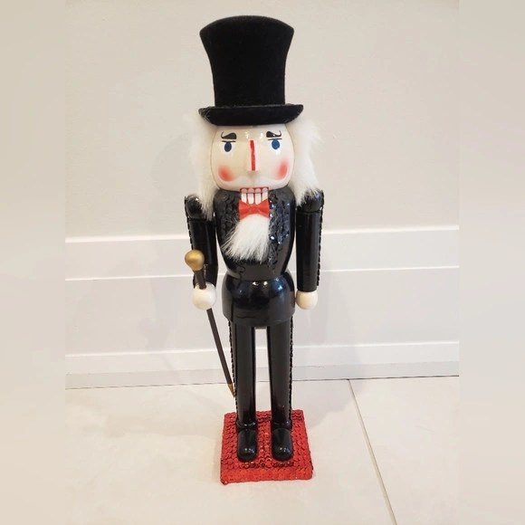 The base is red sequins. His suit and top hat has black sequins.