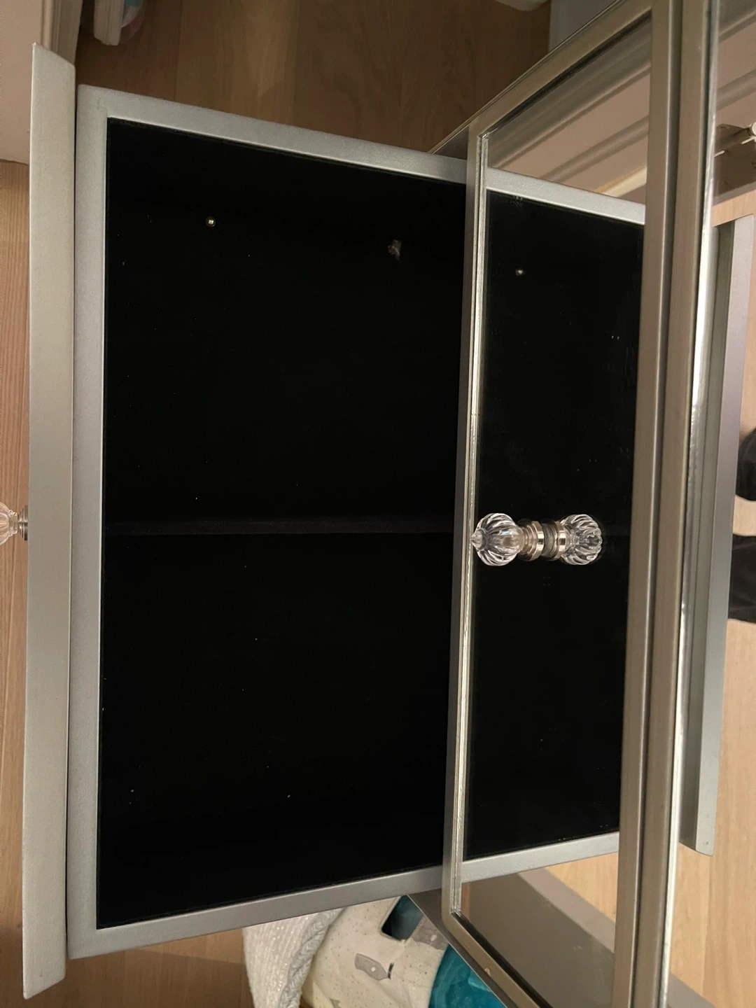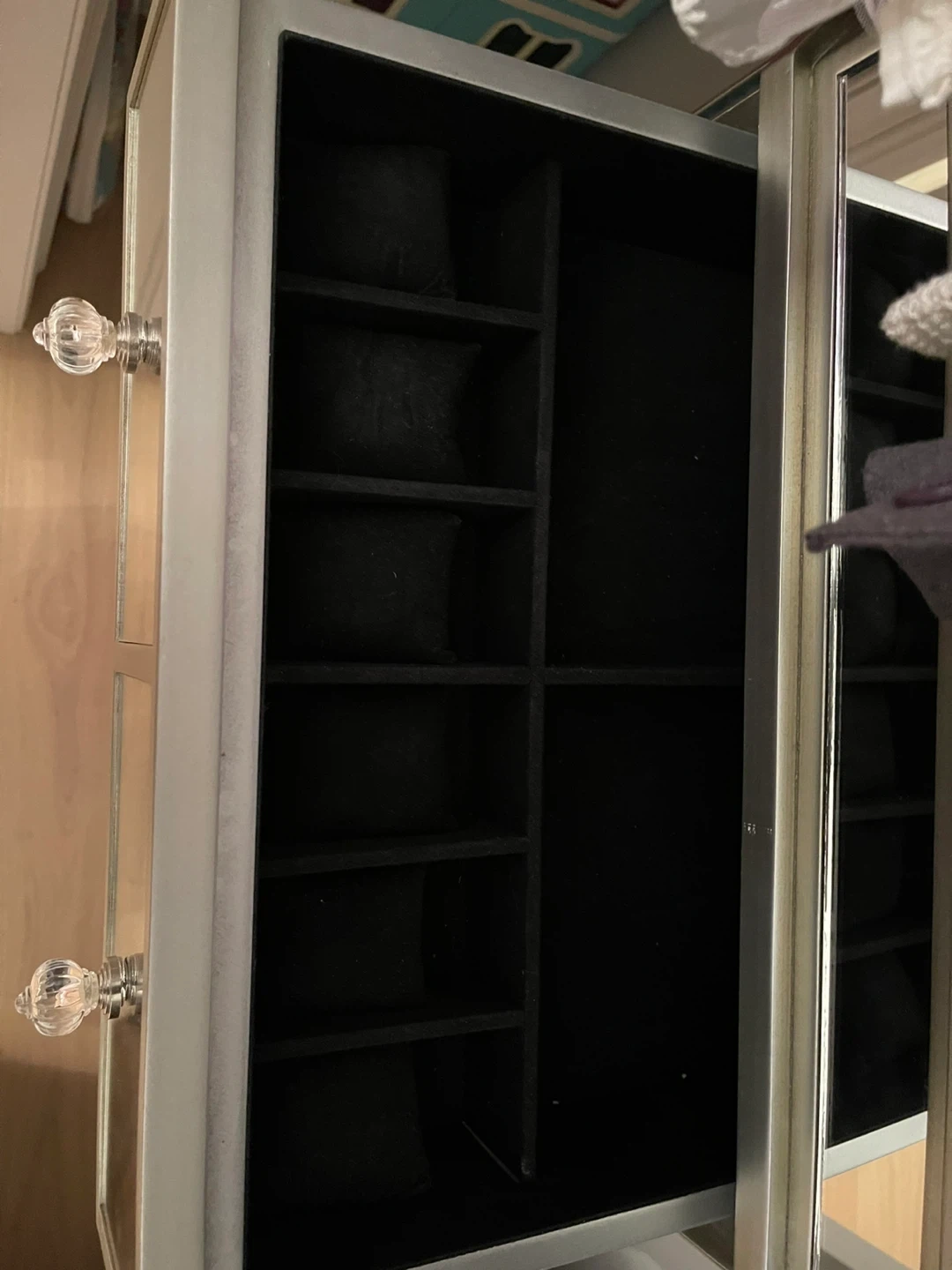28Selling a Bombay mirrored jewellery chest. It features multiple drawers and a top compartment for organizing your jewellery and accessories. The mirrored finish adds a touch of elegance to any room. It's in good condition, all organizing inserts are included (no costume jewelry)