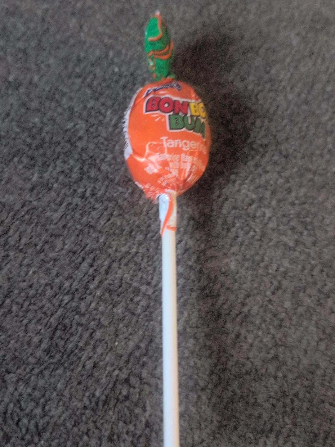 Selling a Bon Bon Bum Tangerine flavored lollipop. It's a delicious and fun treat!