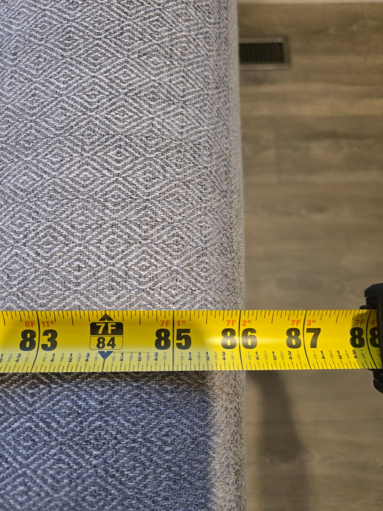 10Selling a sofa from Bonders Furniture in like-new condition! The outer covering is 100% polyester. It's approximately 87 inches wide and 37 inches deep. 22 inches from floor to seat , beautiful and clean sofa