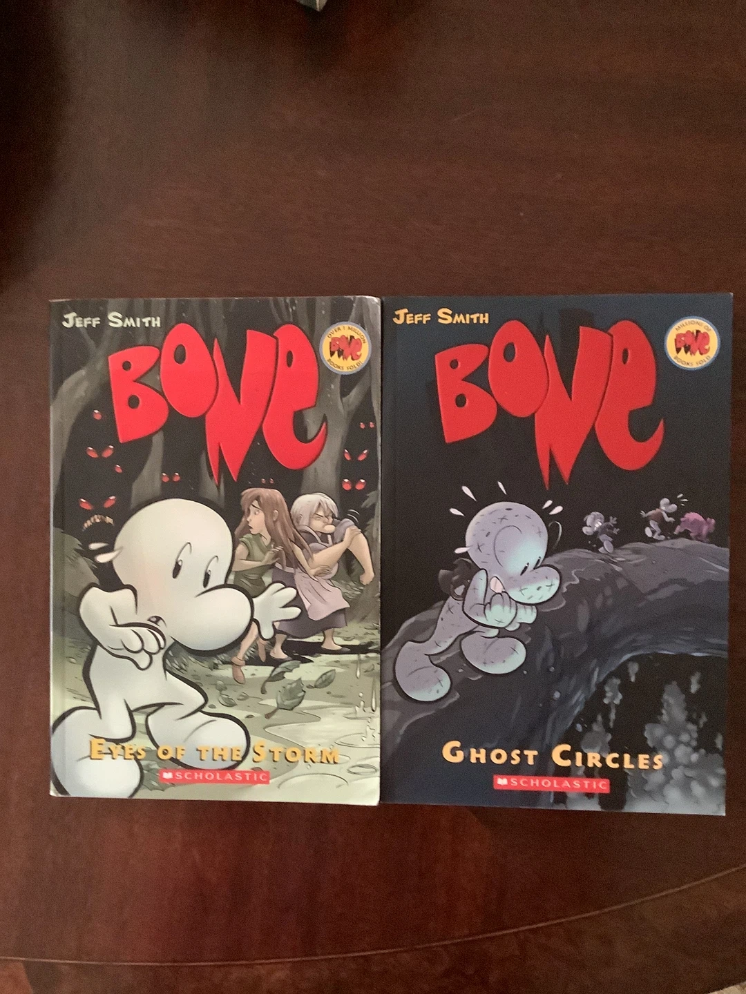 102Selling two Bone graphic novels by Jeff Smith: Eyes of the Storm and Ghost Circles! Both are published by Scholastic. Price is for two books. Local pickup Highway 427 & Bloor St. area