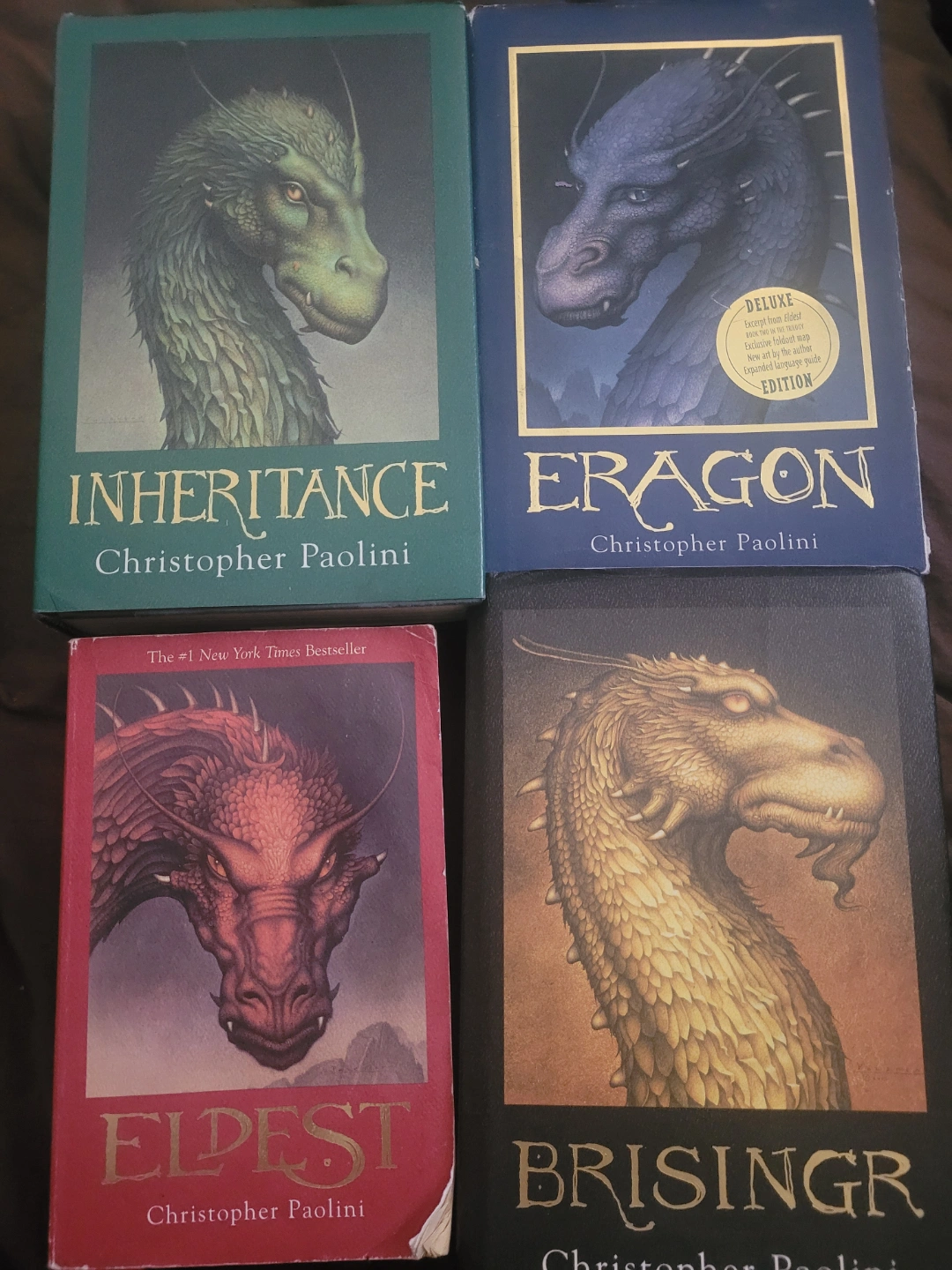 108Complete set of Christopher Paolini's Inheritance Cycle. Includes Eragon (Deluxe Edition), Eldest, Brisingr, and Inheritance. New York Times bestseller.