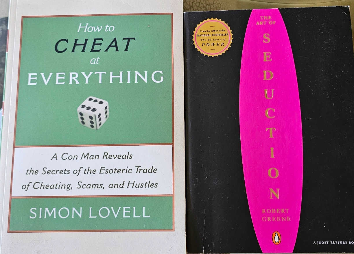 Selling two books together: - "How to Cheat at Everything" by Simon Lovell: A con man reveals the secrets of the esoteric trade of cheating, scams, and hustles - "The Art of Seduction" by Robert Greene: From the author of the national bestseller "The 48 Laws of Power"