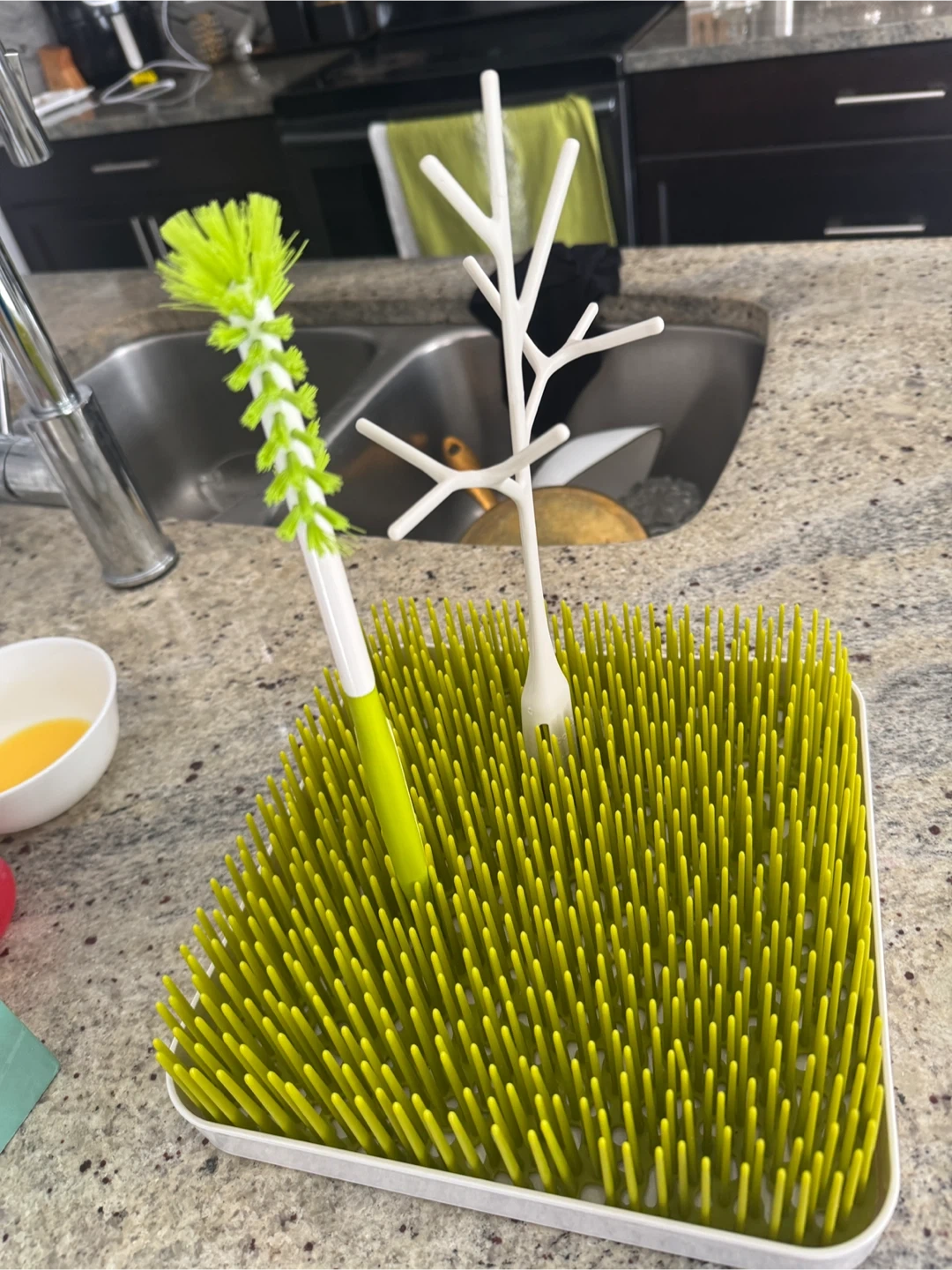 Selling a Boon Grass countertop drying rack! It's perfect for drying baby bottles, sippy cups, and other small items. It's in great condition and comes from a smoke-free home