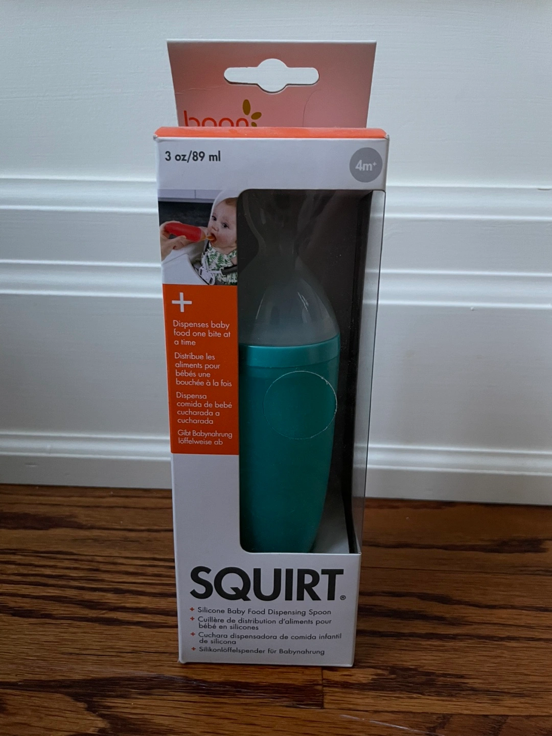 26I have a brand new in box never used Boon Squirt Silicone Baby Food Dispensing Spoon for sale! It dispenses baby food one bite at a time. It's suitable for babies 4 months and up. It holds 3 oz/89 ml. The box is included!