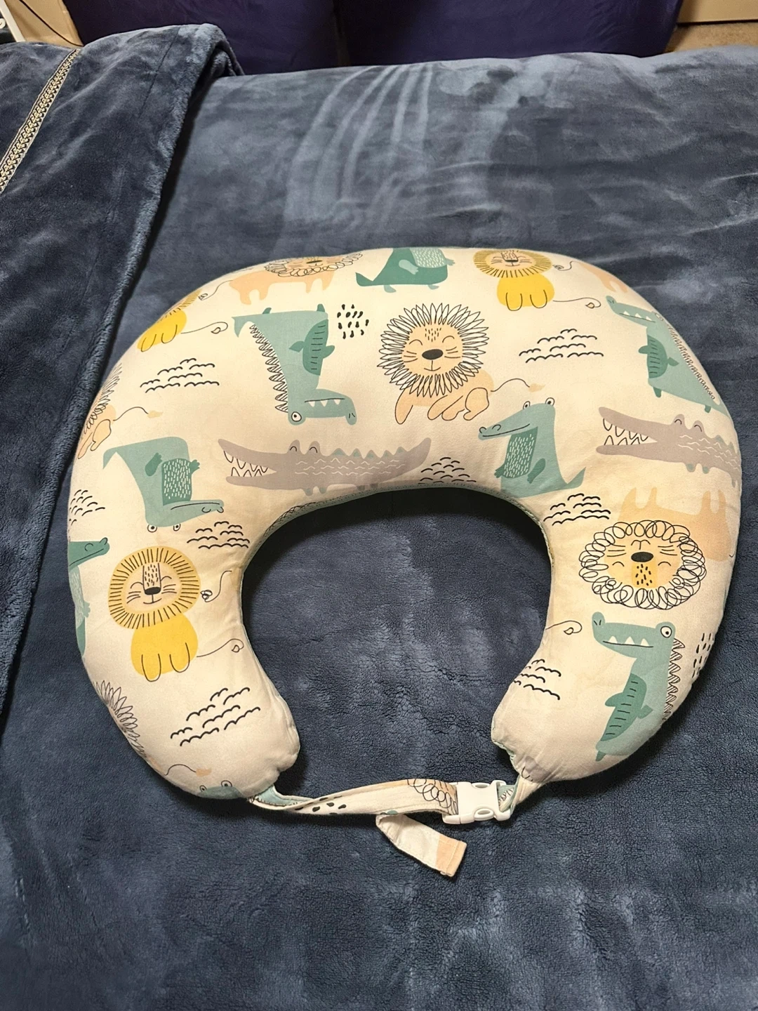 A gently used Boppy pillow featuring a cute lion and alligator print! It's in great shape and ready for a new home. Perfect for feeding time or tummy time with your little one