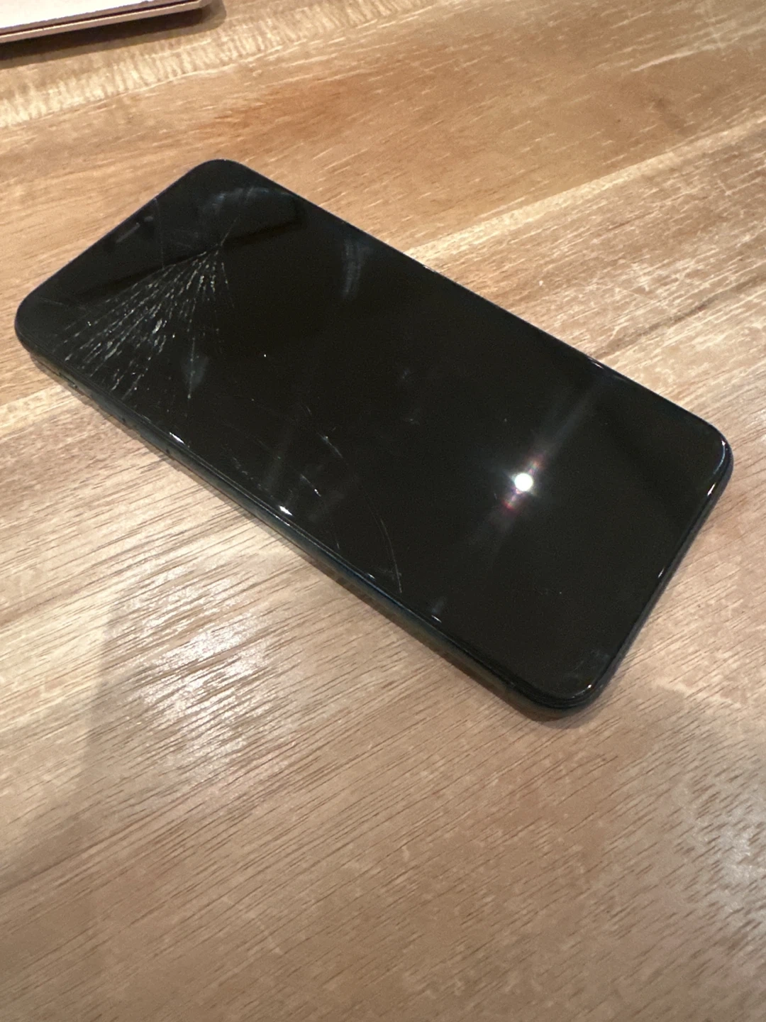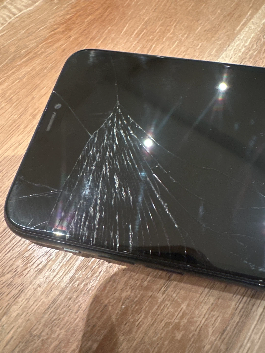 This is an Apple iPhone 11 Pro with a cracked screen. The phone comes with a dark blue case. It's ideal for someone looking to repair it or use it for parts. It still works perfectly fine and will not cut you - I used phone for 3 months after it cracked with no issues.