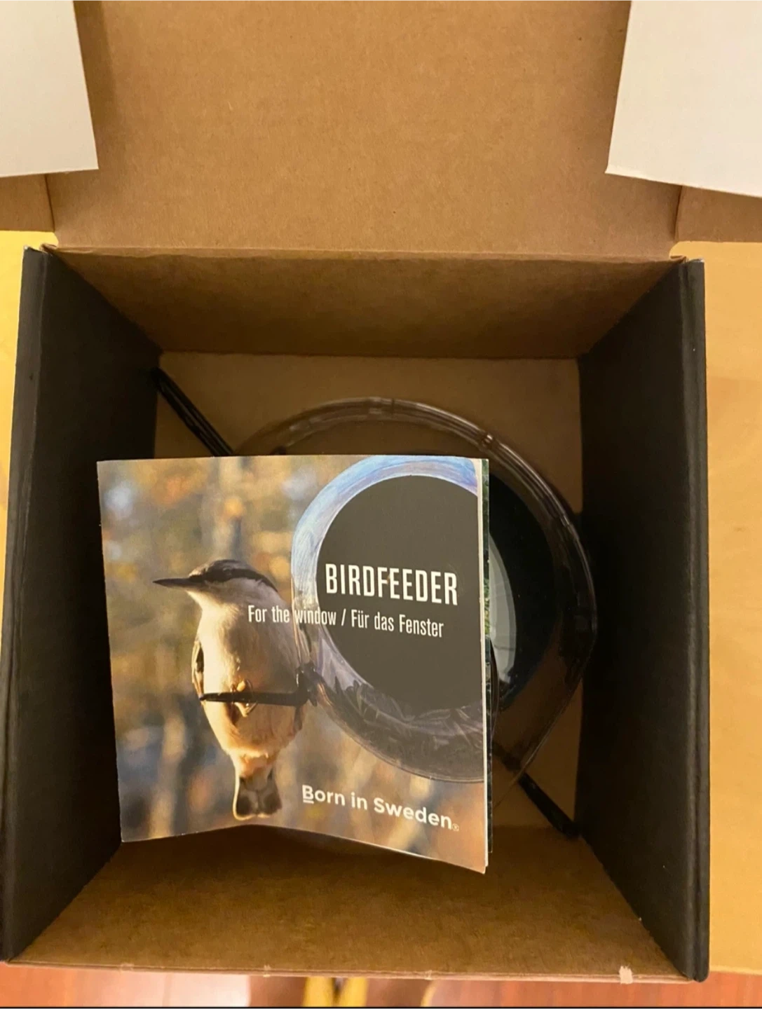 20Selling a brand new Born in Sweden birdfeeder, still in its original box! It's designed to attach to a window, so you can enjoy watching birds up close. Originally bought for $45,selling for $25.