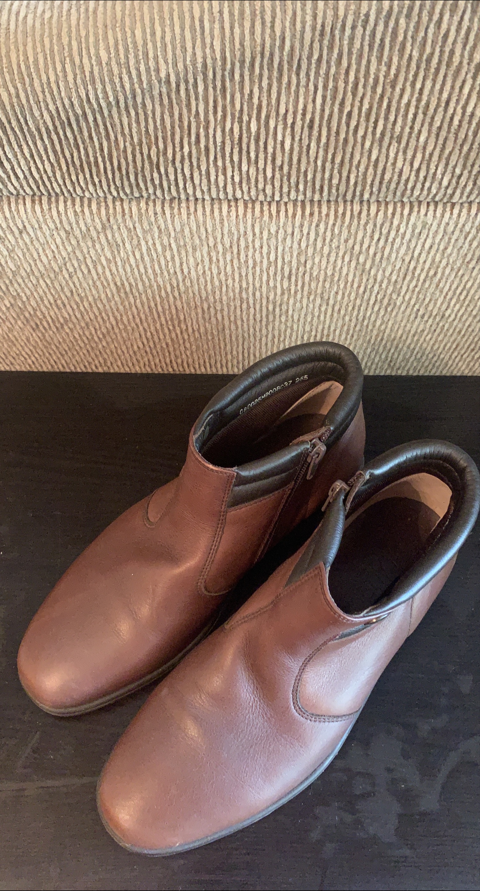 These Bos & Co ankle boots are a stylish and comfortable choice for everyday wear. The rich brown leather gives them a classic look that can be dressed up or down. They feature a convenient side zipper for easy on and off. Perfect for adding a touch of sophistication to any outfit! Made in Korea Cash only
