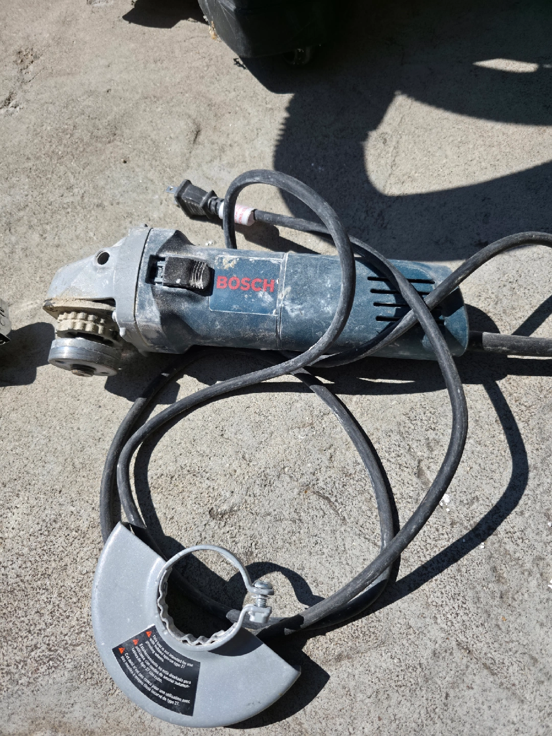 Selling a Bosch angle grinder. It's in used condition but still works. Includes the guard.