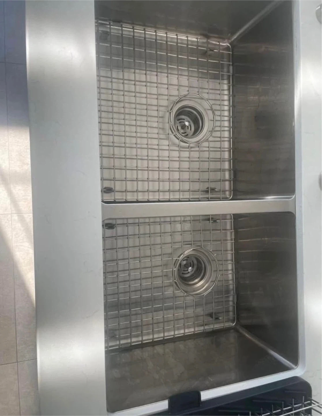 28Here's a Bosco Deluxe Series stainless steel sink, model 203321L. It features radius corners and rear positioned drain holes to maximize usable bowl and cabinet storage space below. Key features: - Handcrafted - 304 Stainless Steel 18 Gauge - 18/10 Chrome Nickel Content - Bowl Corner Radius of 15mm - Undermount clips - Template - Stainless Steel Strainers - 10" Deep Outside dimensions: 33" x 18" x 10" Inside dimensions: 31" x 16" x 10" Bowl size: 17" x 16" x 10" and 13" x 16" x 10" Minimum Cabinet Size 36"