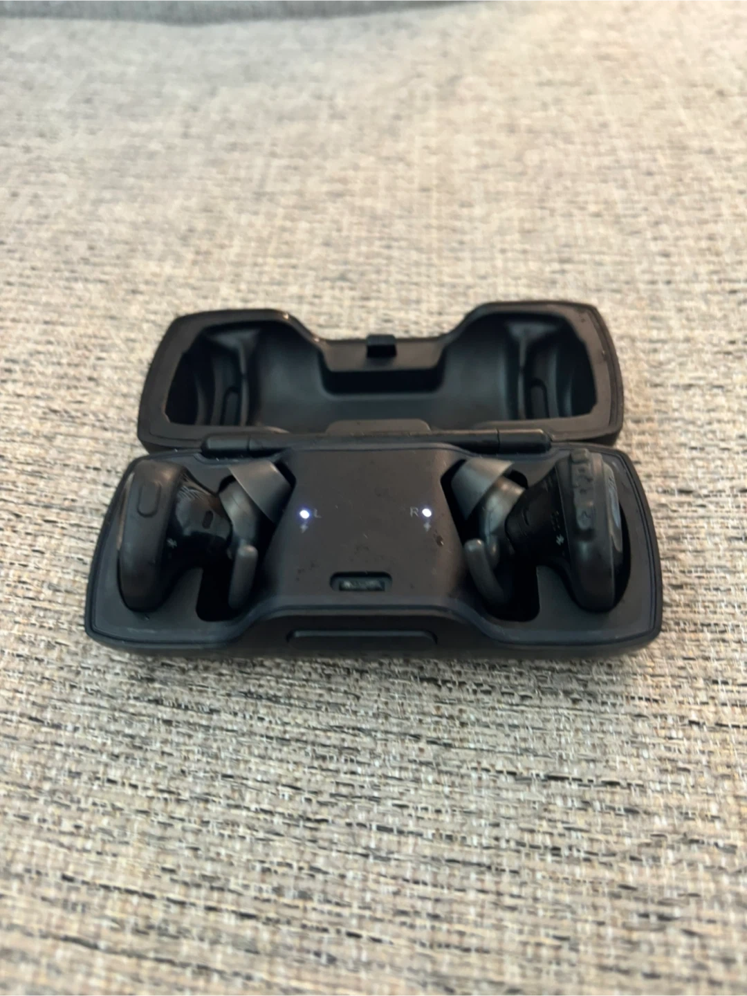 Selling a pair of Bose QuietComfort Earbuds in black. They're in great condition and come with the charging case. Perfect for enjoying your music or podcasts without any distractions!