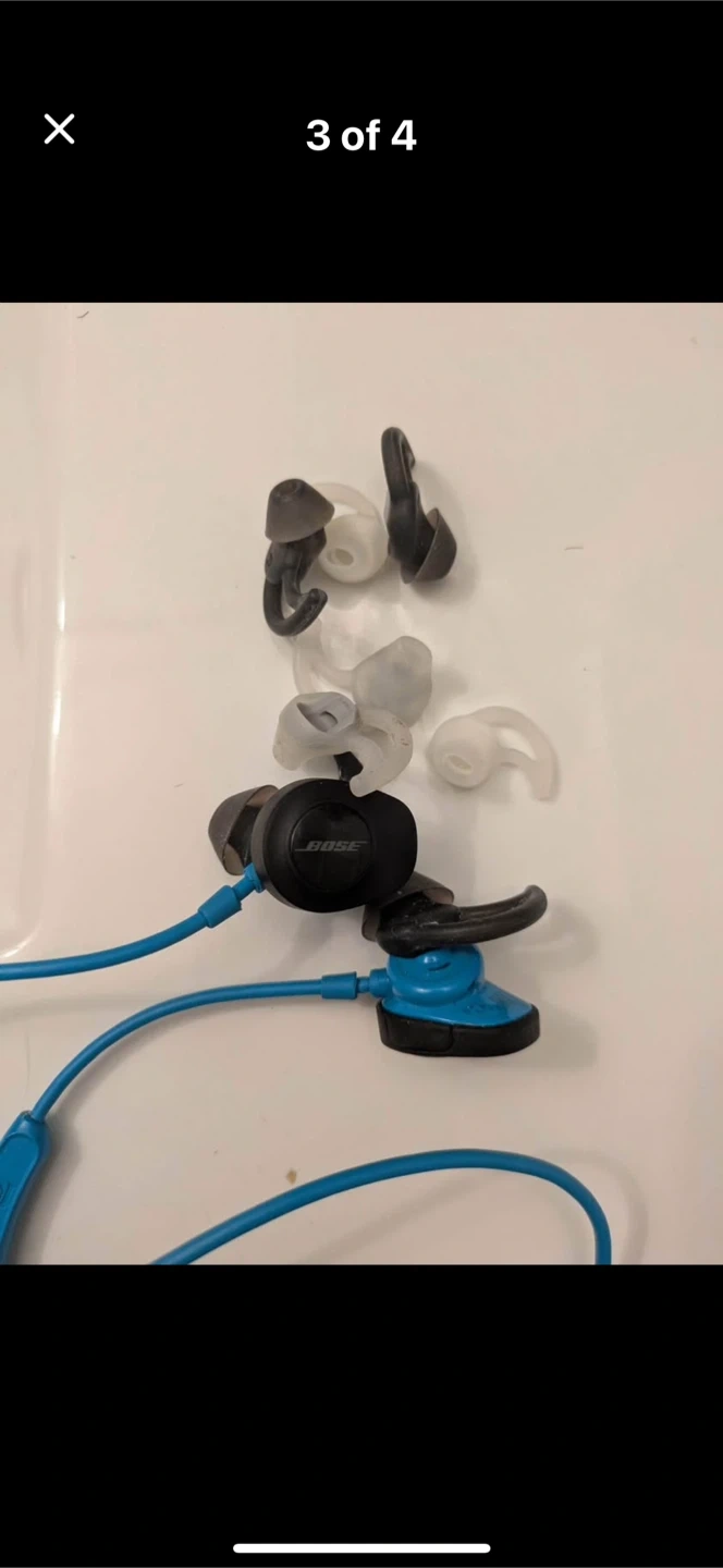 Selling a set of Bose Soundsport wireless headphones in blue! They come with a variety of ear tips to ensure a comfortable fit. Also included is the original carrying case for easy storage and portability