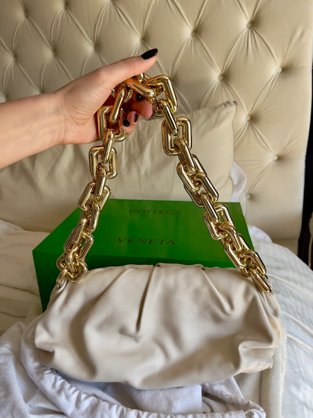 Selling a Bottega Veneta Chain Pouch bag in a beautiful ivory colour! It's in great condition and comes with box and dust bag. This stylish bag is perfect for adding a touch of elegance to any outfit. The chain detail is gorgeous!
