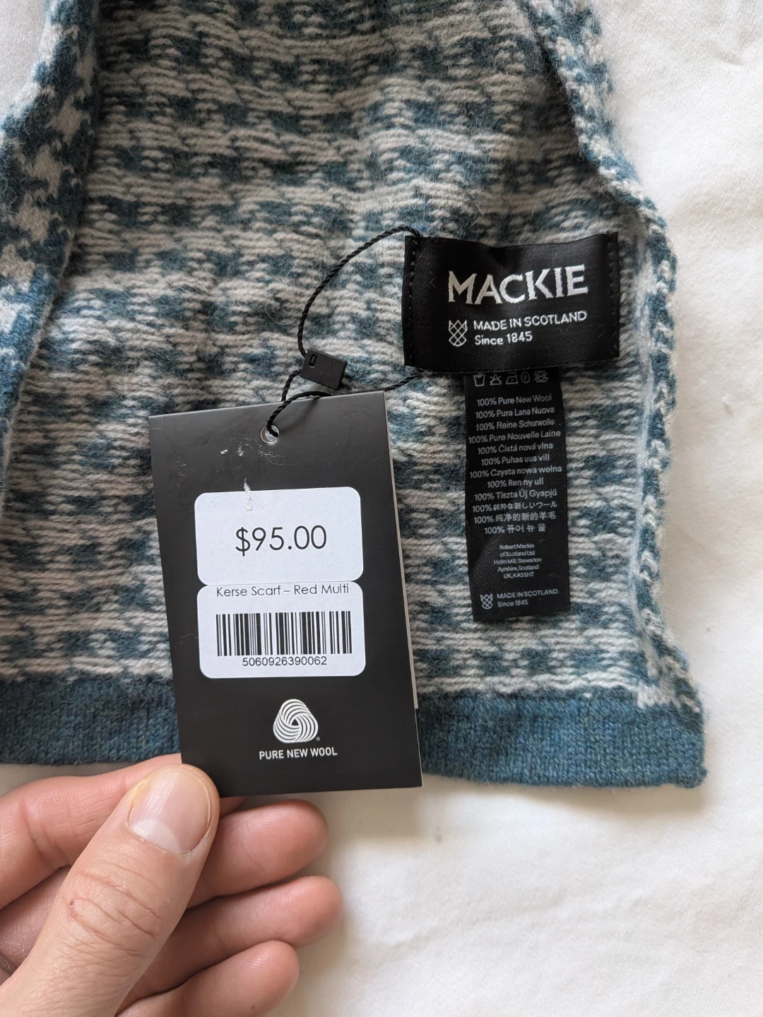 This is a brand new Mackie Kerse Scarf in Red Multi, still with tags! Made in Scotland since 1845, it's crafted from 100% Pure New Wool. The original price was $95.00