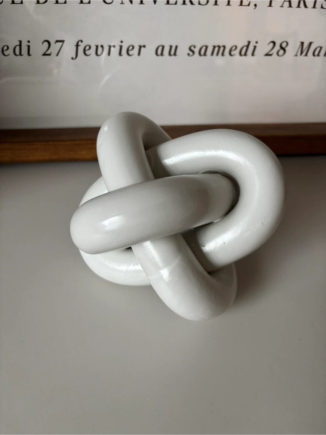76Looking to add a unique touch to your decor? This decorative white knot sculpture might be just what you need! It's in great condition and measures approximately 4 inches in height.