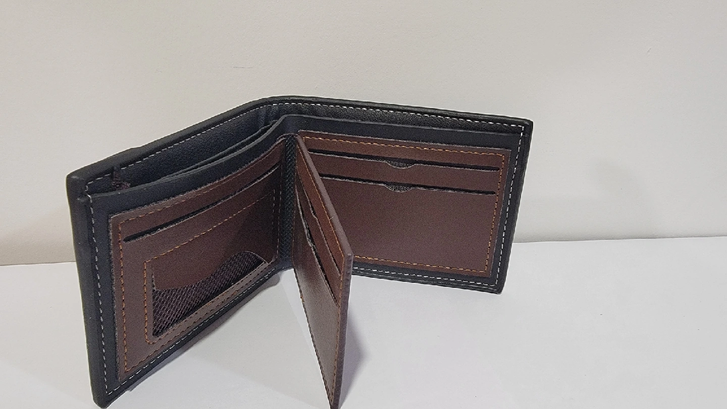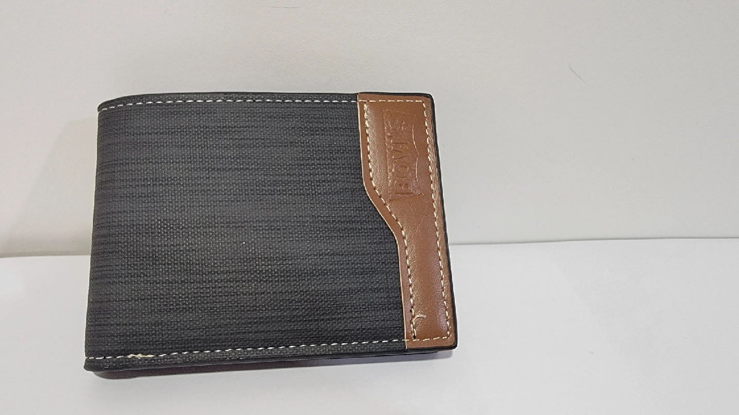 Selling a BOVIS leather wallet! It's in great condition and comes with its box. The wallet features a stylish design with a combination of black and brown leather accents. Perfect for keeping your cards and cash organized!