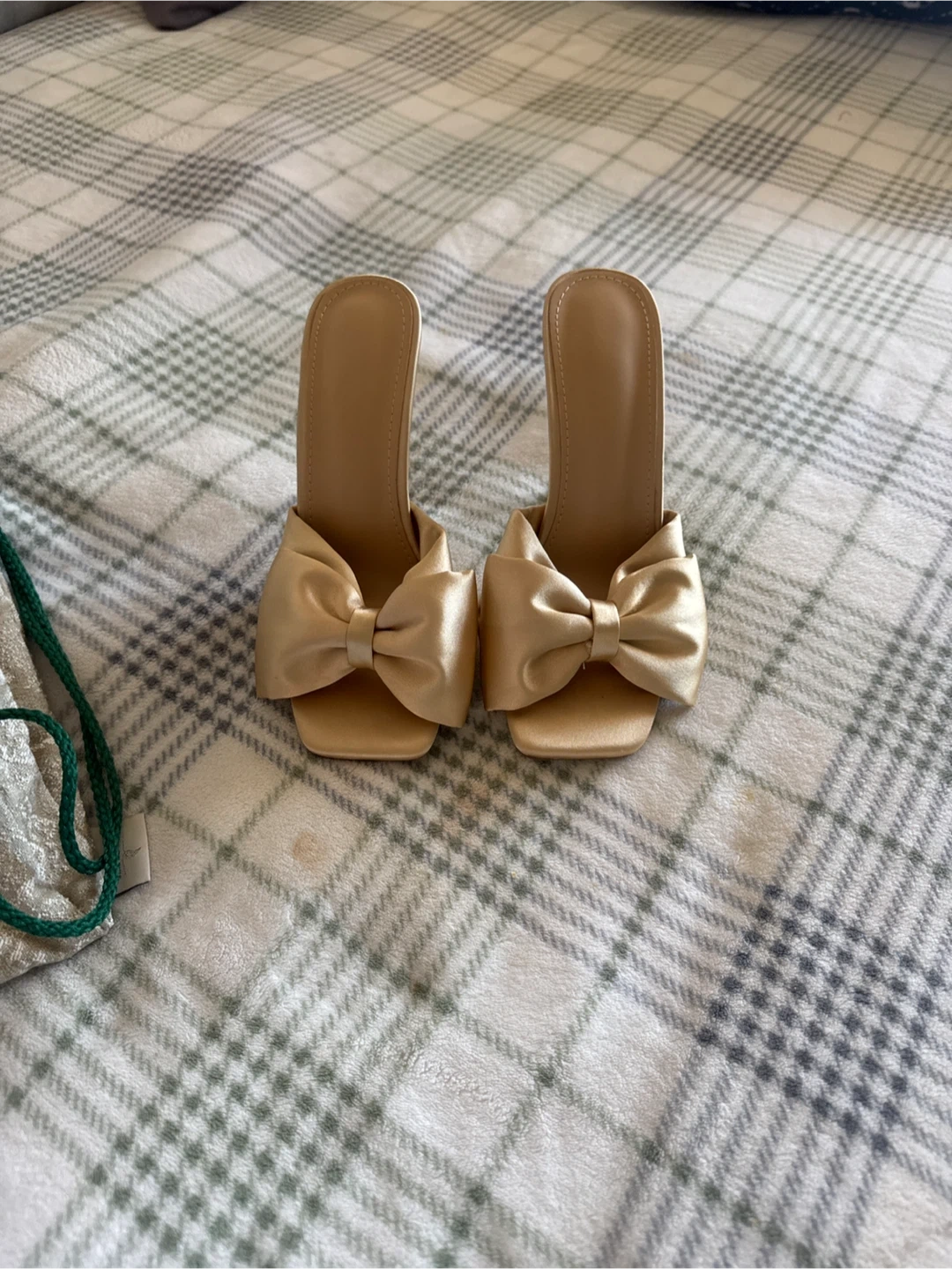 These are a pair of cute bow heeled mules in a size 7! They're perfect for dressing up or down, and the bow detail adds a touch of sweetness. They're in great condition and ready for a new home