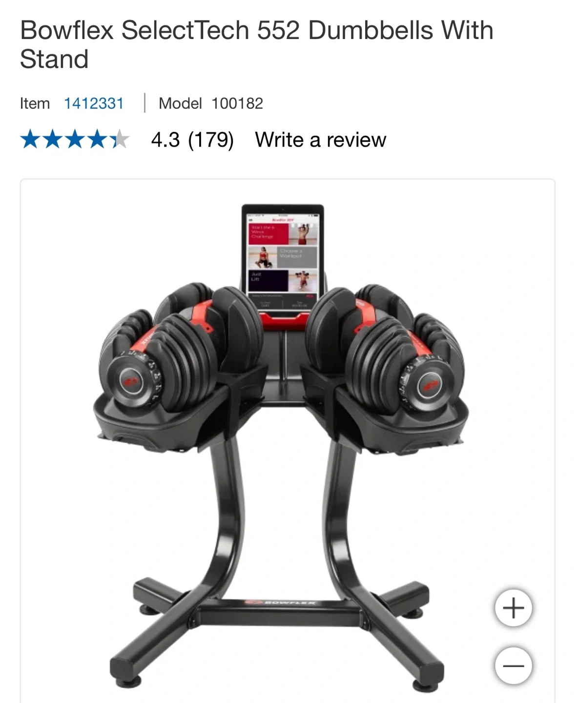 Selling a pair of Bowflex SelectTech 552 adjustable dumbbells, complete with the stand! These dumbbells are in great shape and ready for your home workouts. With their adjustable weight settings, they're perfect for a variety of exercises and fitness levels. Can deliver!