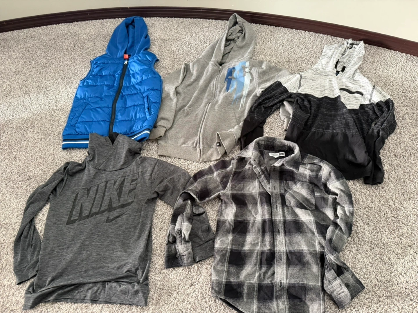 18Selling a bundle of boys' hoodies shirts and a vest. There's a variety of styles, perfect for layering or everyday wear. Brands include Nike, Under Armour, Super Mario, Minecraft and Winnipeg Jets. All in good condition with lots of life left!