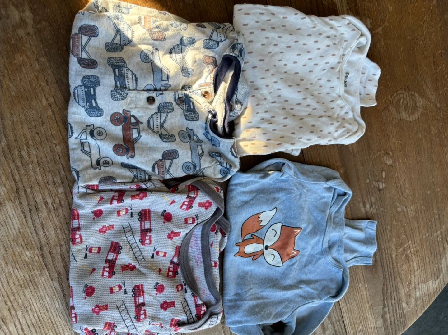 65Selling a bundle of 4 boys long sleeve onesies. All are size 24 month. They feature cute patterns like foxes, trucks, dots and fire trucks.