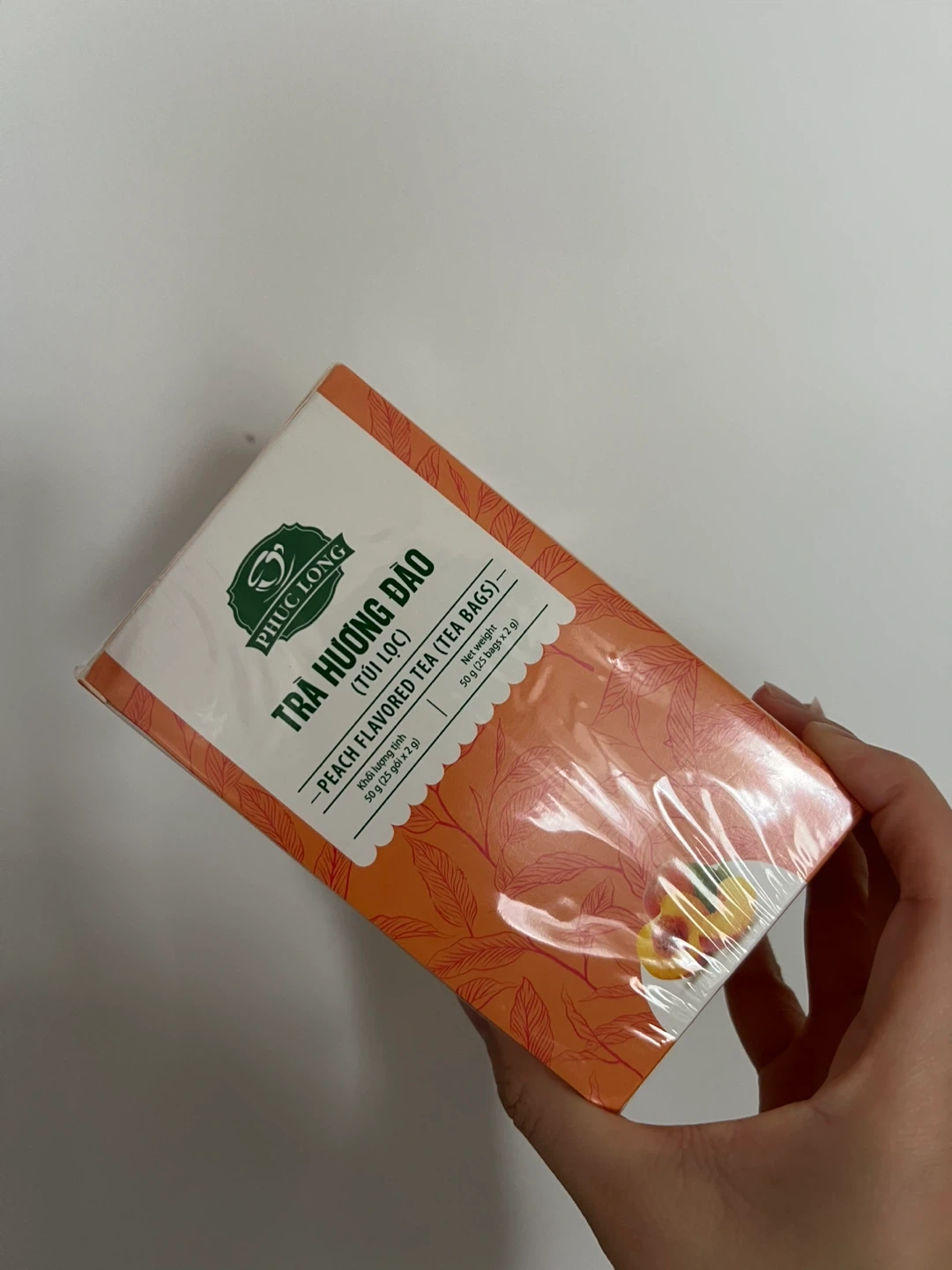 Phuc Long brand peach flavoured tea bags. Directly from Vietnam. Includes 50 tea bags. Brand new with packaging, just the box got dent.