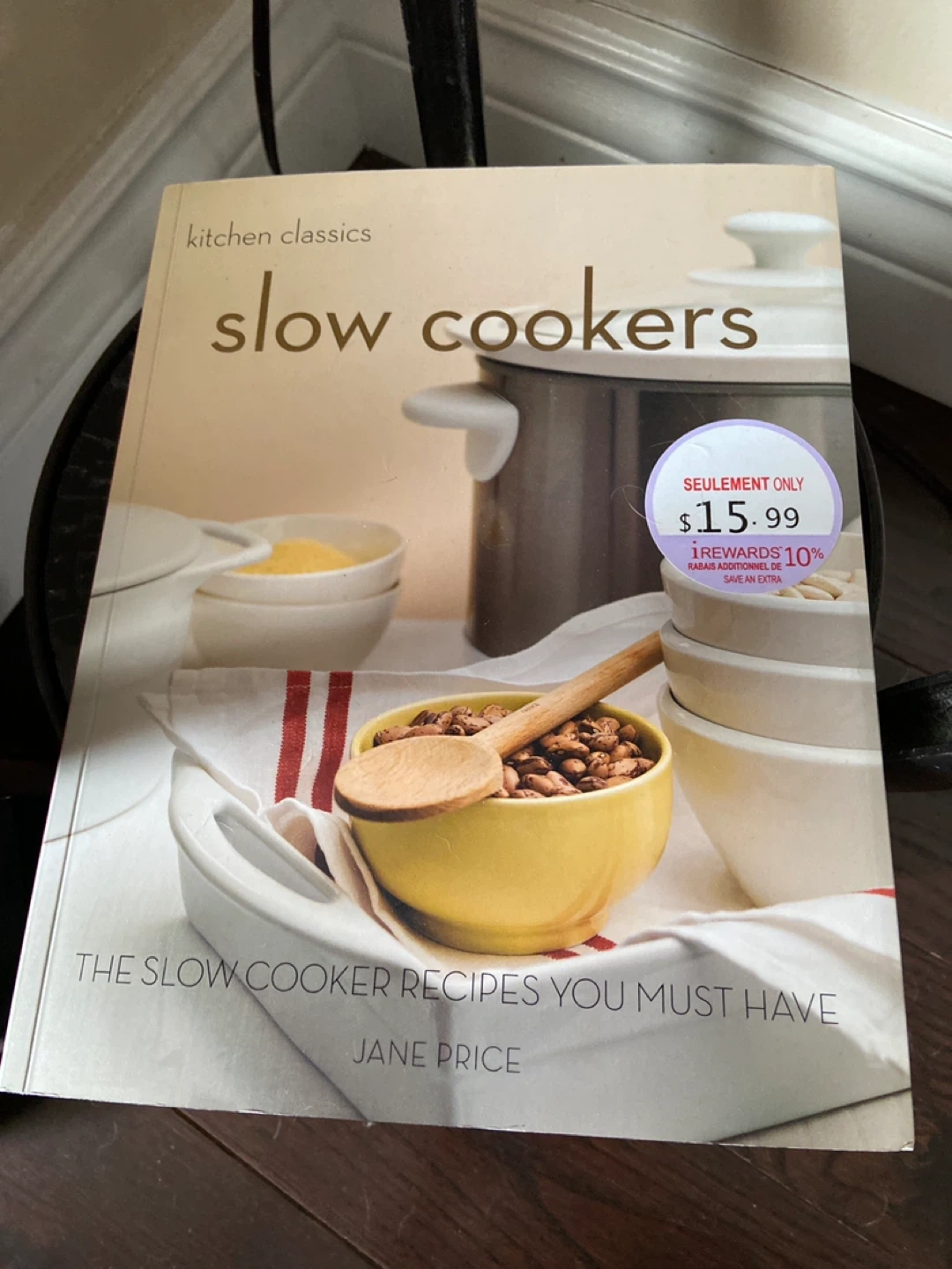 This cookbook features "The Slow Cooker Recipes You Must Have" by Jane Price. It's part of the "kitchen classics" series. Recipes focus on slow cooker meals.