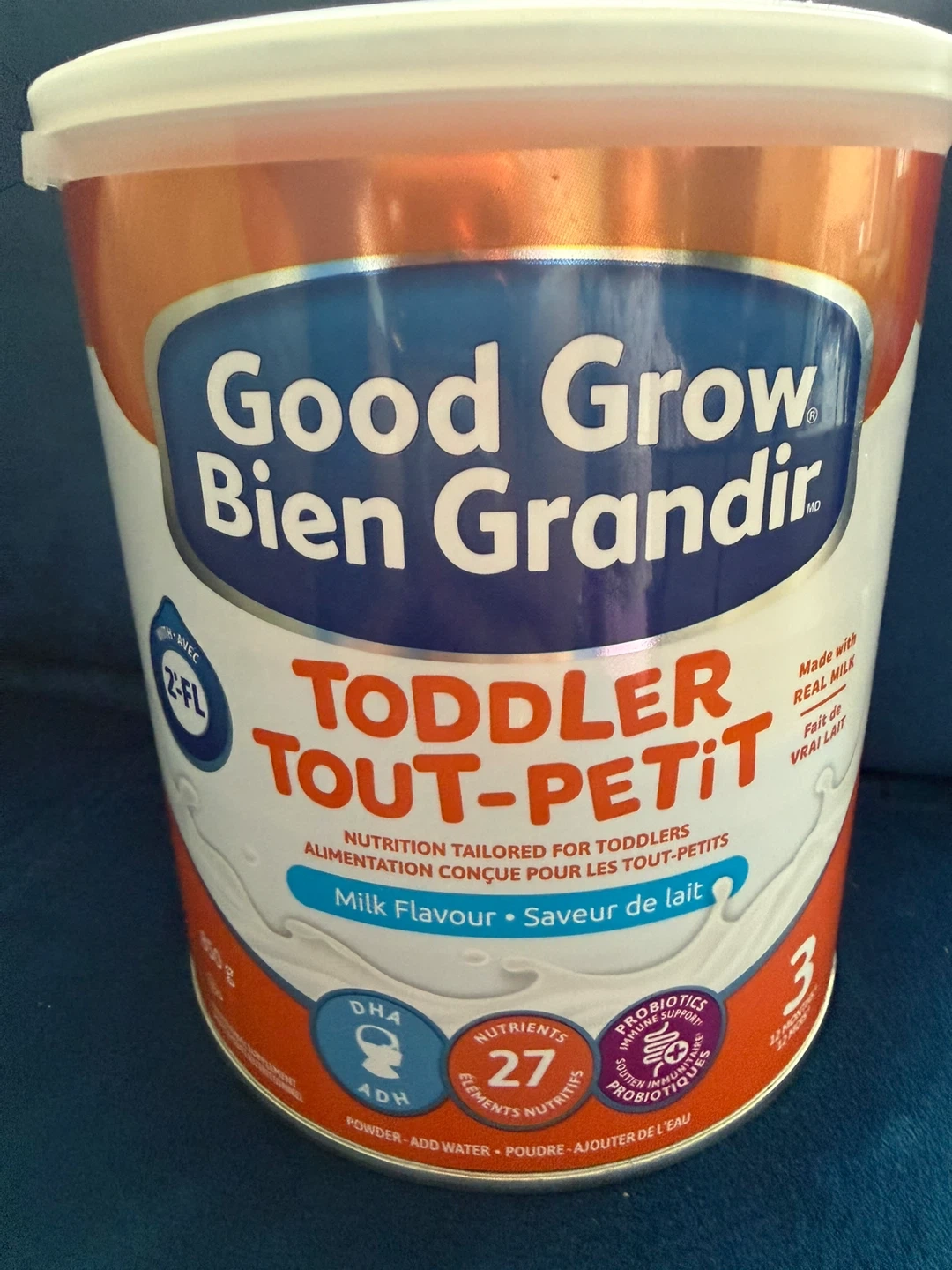Good Grow Bien Grandir toddler formula in milk flavour. Nutrition tailored for toddlers, with DHA, 27 nutrients, and probiotics. Powder to be added to water. Exp 2026 JL 08.