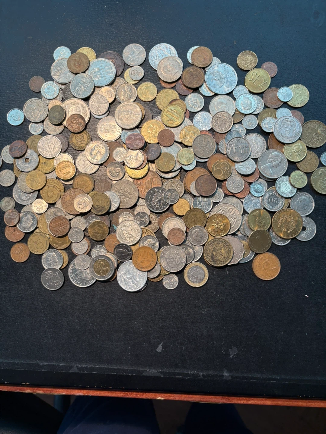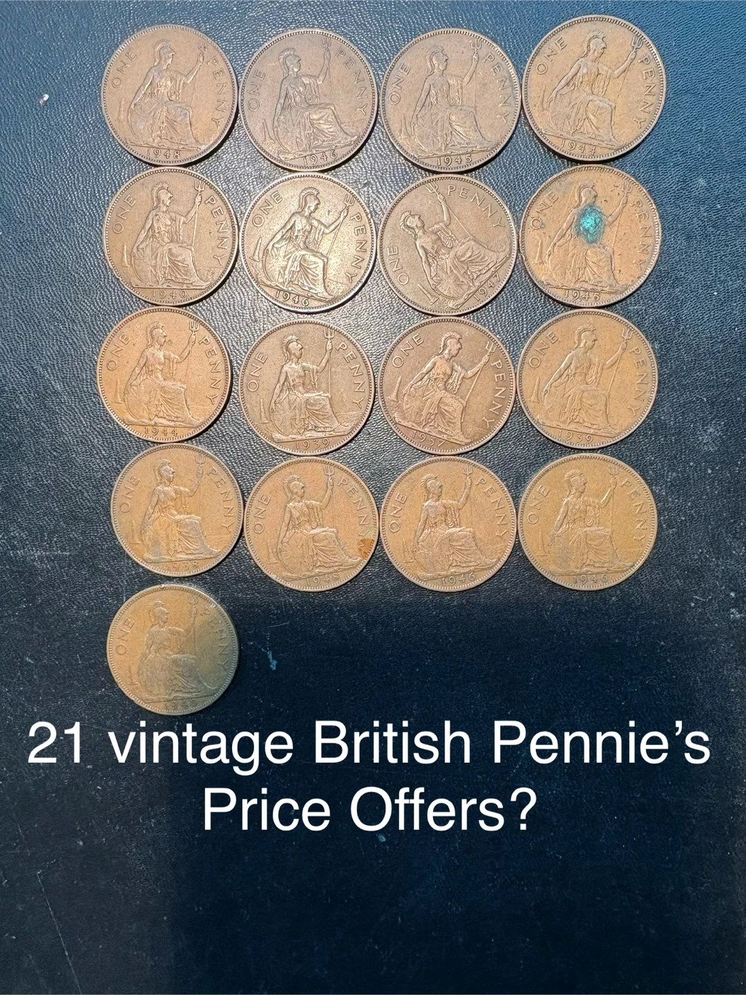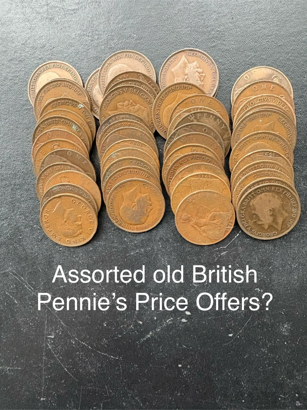 A varied assortment of vintage British pennies and some halfpennies. These coins showcase different years and designs. They're great for collectors or anyone interested in numismatics.