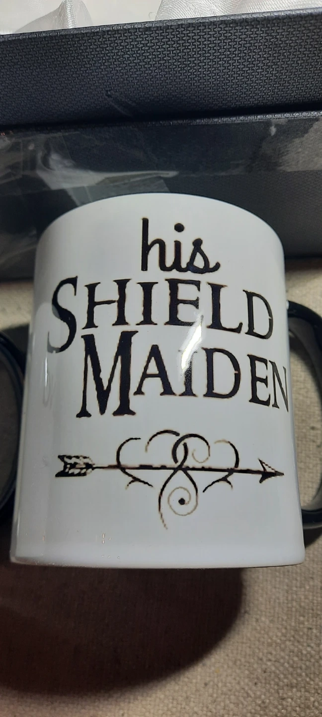 Selling a set of mugs, one says "his Shield Maiden" and the other says "her Viking"! They come in a box and would make a great gift for a couple