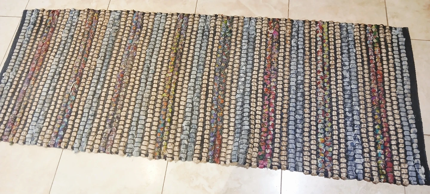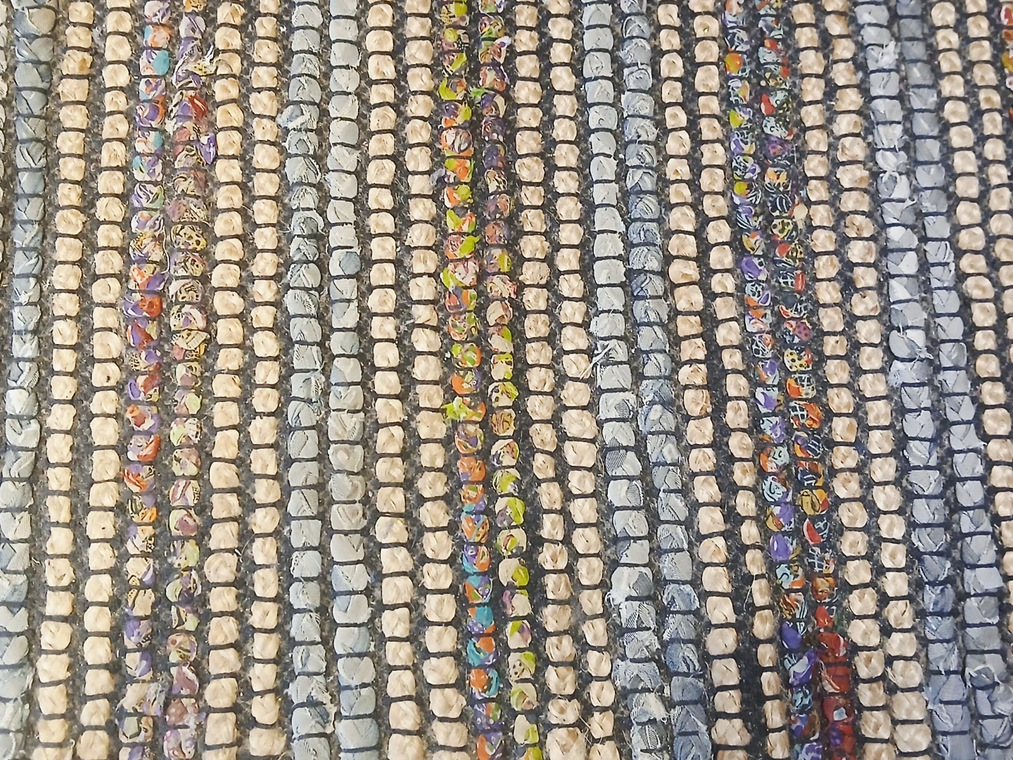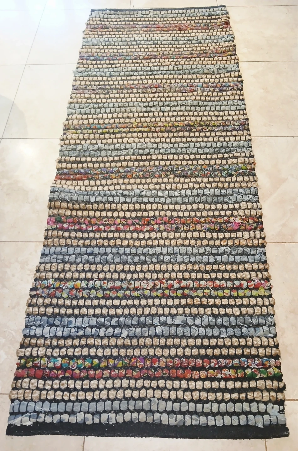 This FREE cotton runner rug features a colourful striped pattern. It's made from woven fabric. 75 x 29 inches, the rug is a good size for hallways or entryways.