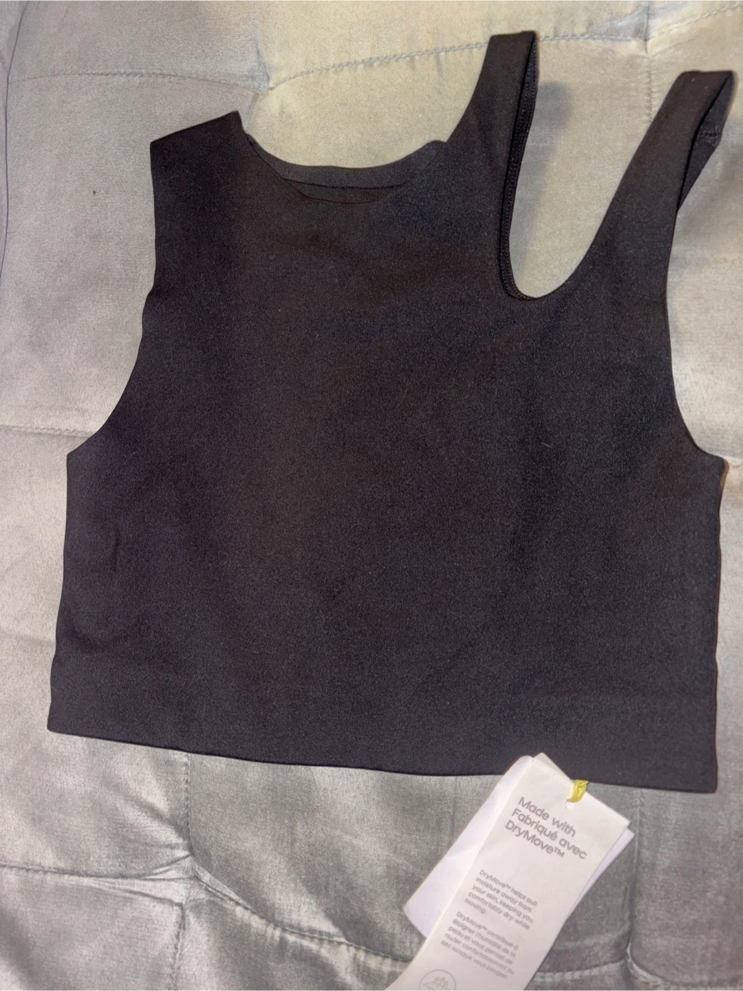 Black sports bra made with DryMove fabric. DryMove helps pull moisture away from your skin, keeping you comfortably dry while moving. Size S.