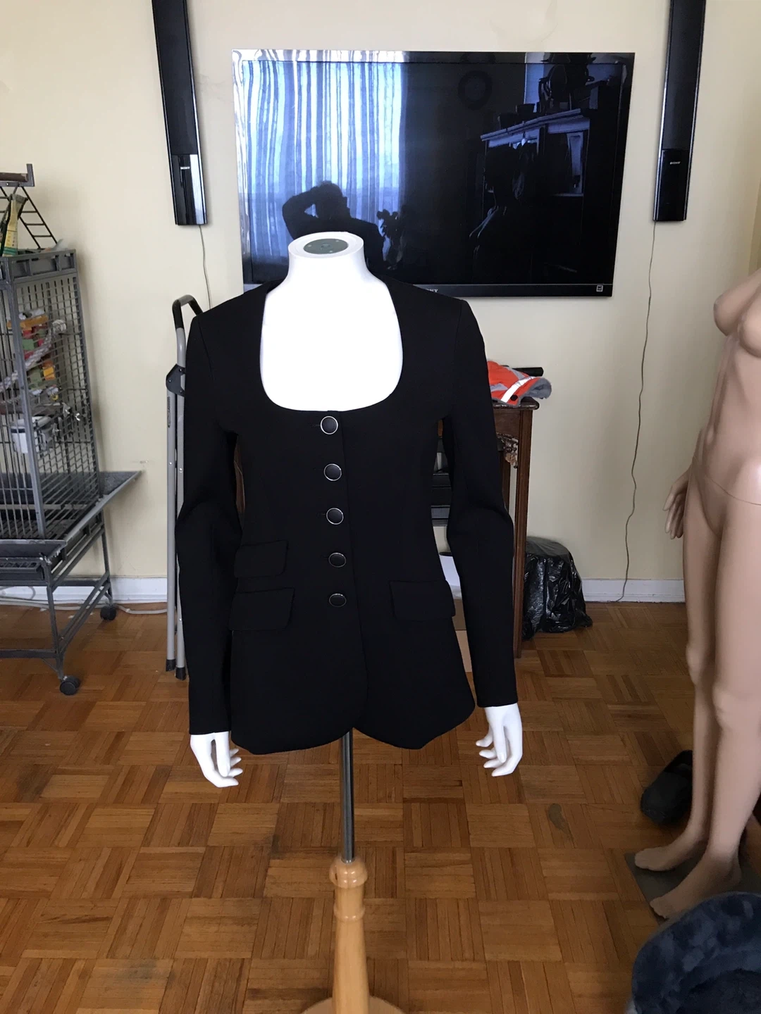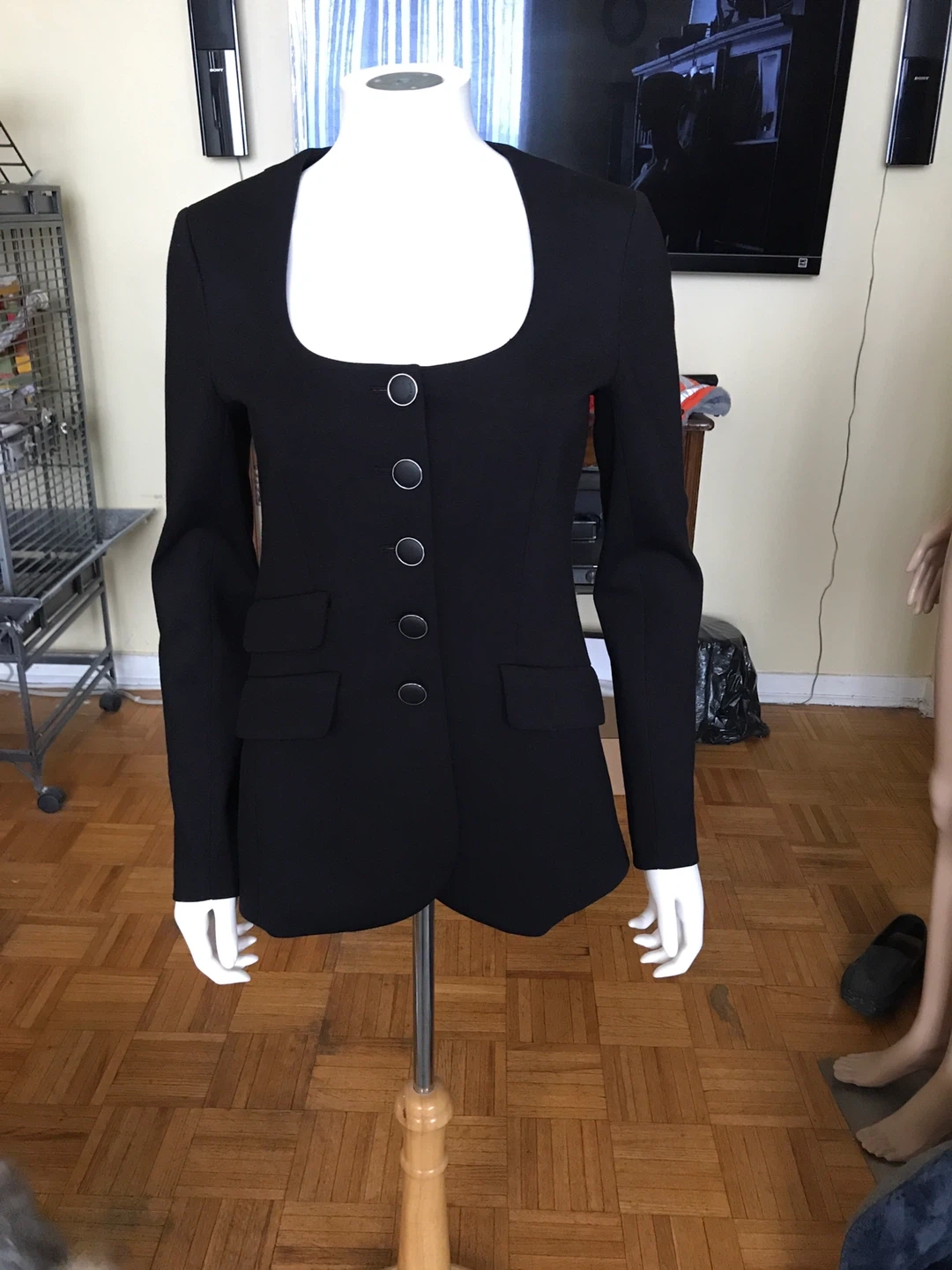 Rag & bone Roslyn Ponte Blazer in black. Size 4. Features a square neckline and button front closure.