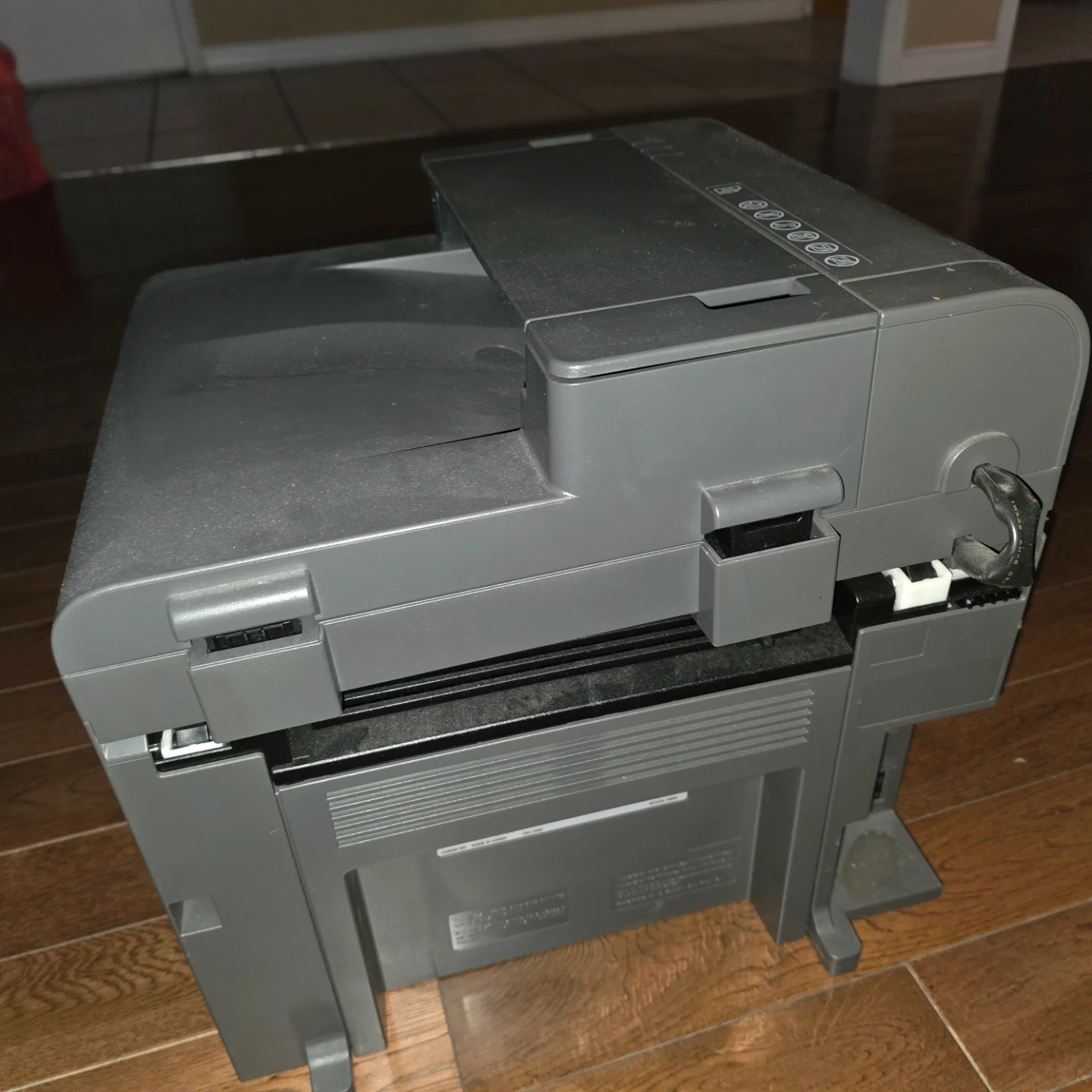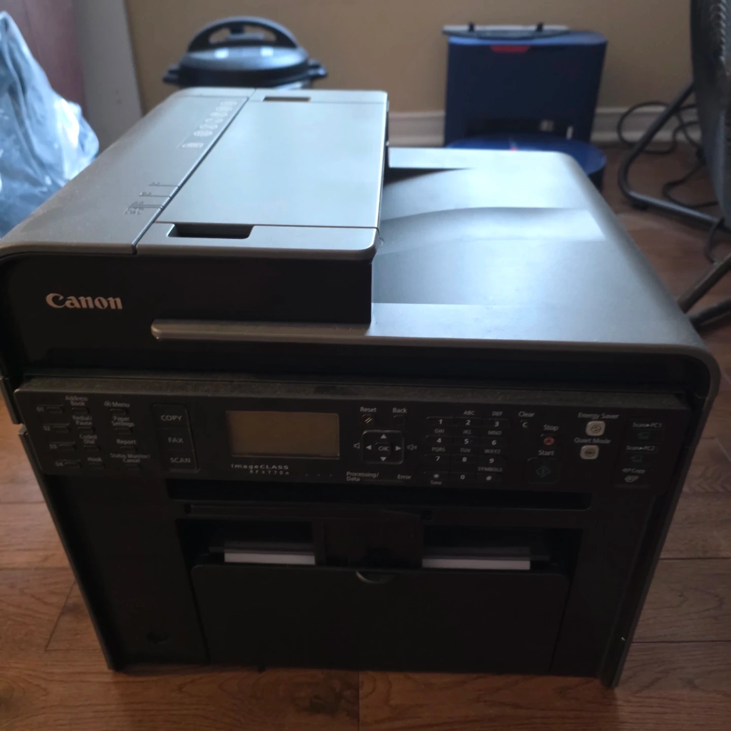 This is a Canon ImageCLASS multifunction printer. It's a grey, all-in-one unit capable of printing, copying, and scanning. It has a built-in display screen and control panel for easy operation.