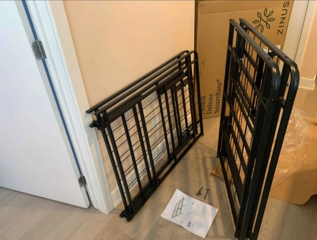 This is a Zinus Twin SmartBase mattress foundation. It's a metal bed frame that provides sturdy support for your mattress. It's easy to set up and folds for storage. This frame is great for anyone needing a reliable and space-saving bed solution.